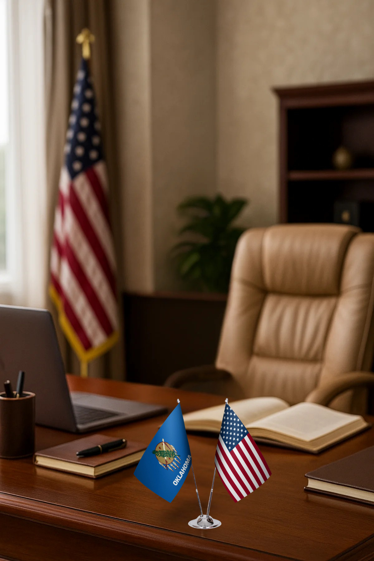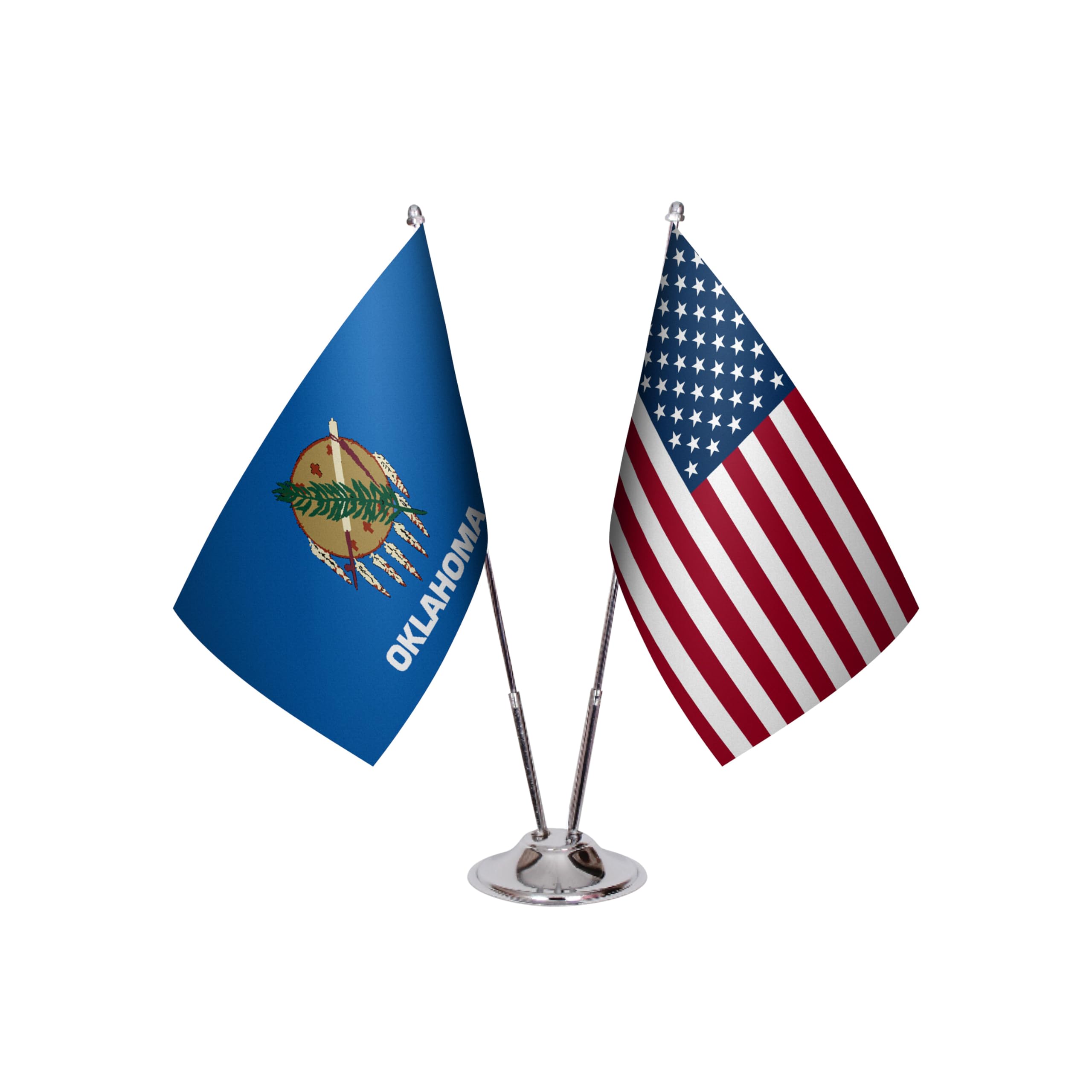 Mirasınızı ve vatanseverliğinizi bu Oklahoma ve ABD Bayrağı Masa Seti ile kutlayın - eyalet bayrağı ile Amerikan bayrağının yan yana mükemmel bir kombinasyonu.