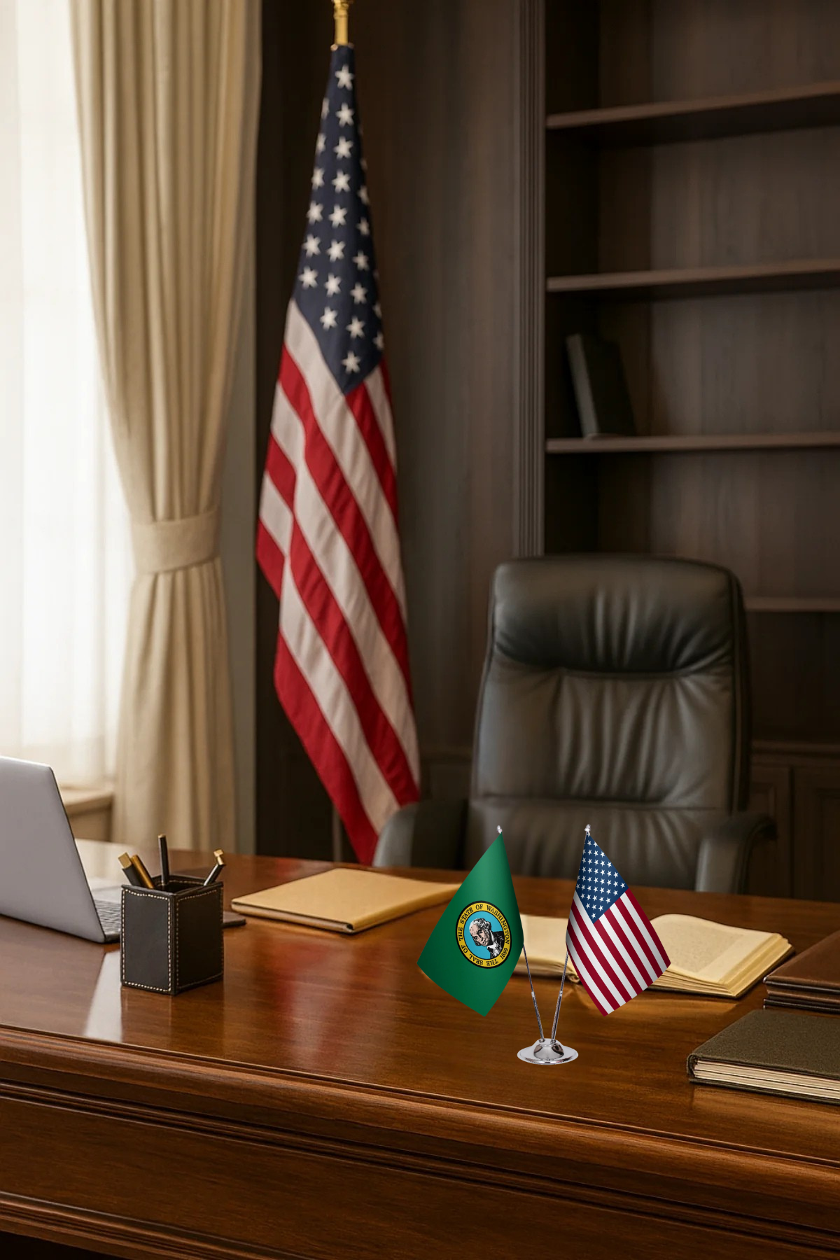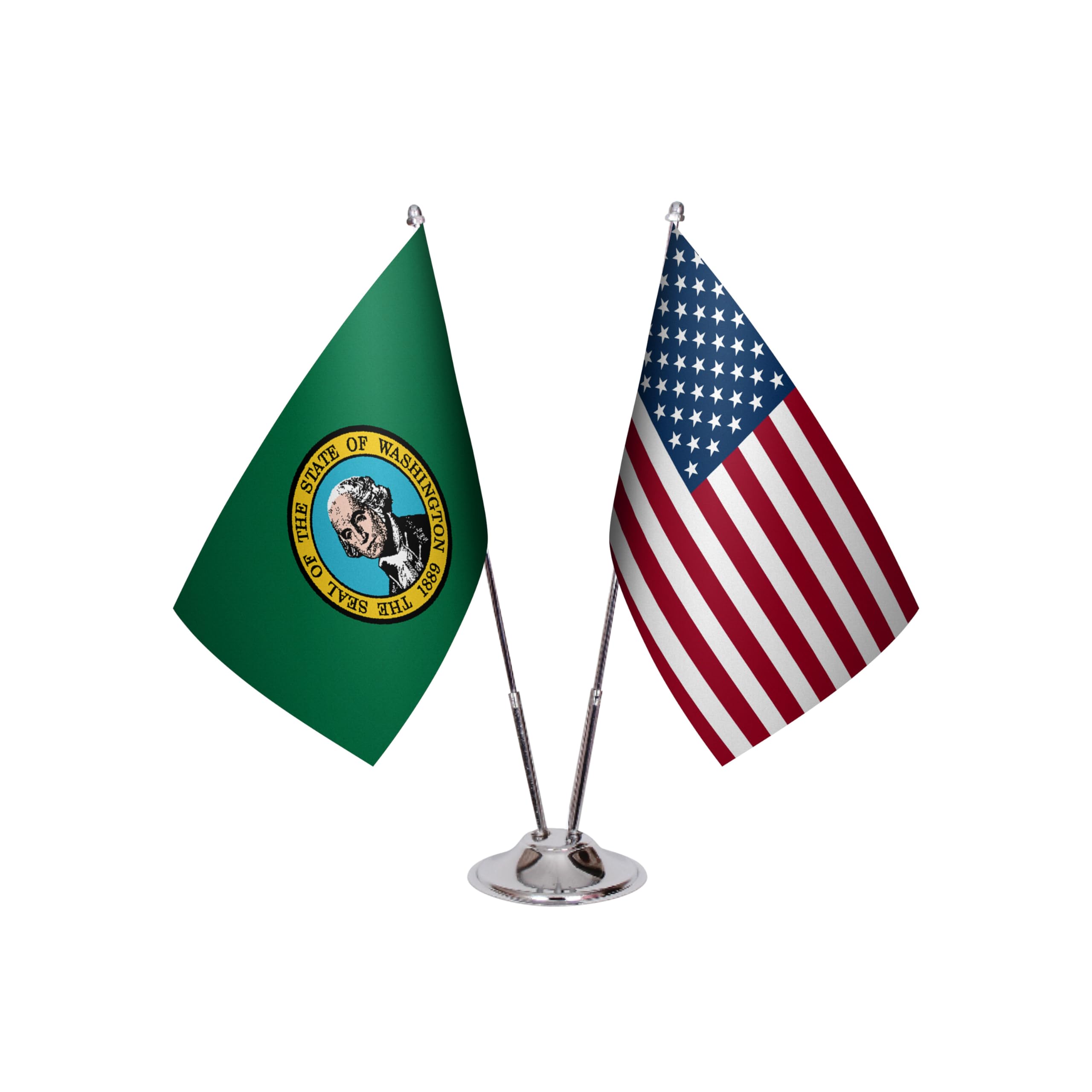 Mirasınızı ve vatanseverliğinizi bu Washington ve ABD Bayrağı Masa Seti ile kutlayın - eyalet bayrağı ile Amerikan bayrağının yan yana mükemmel bir kombinasyonu.