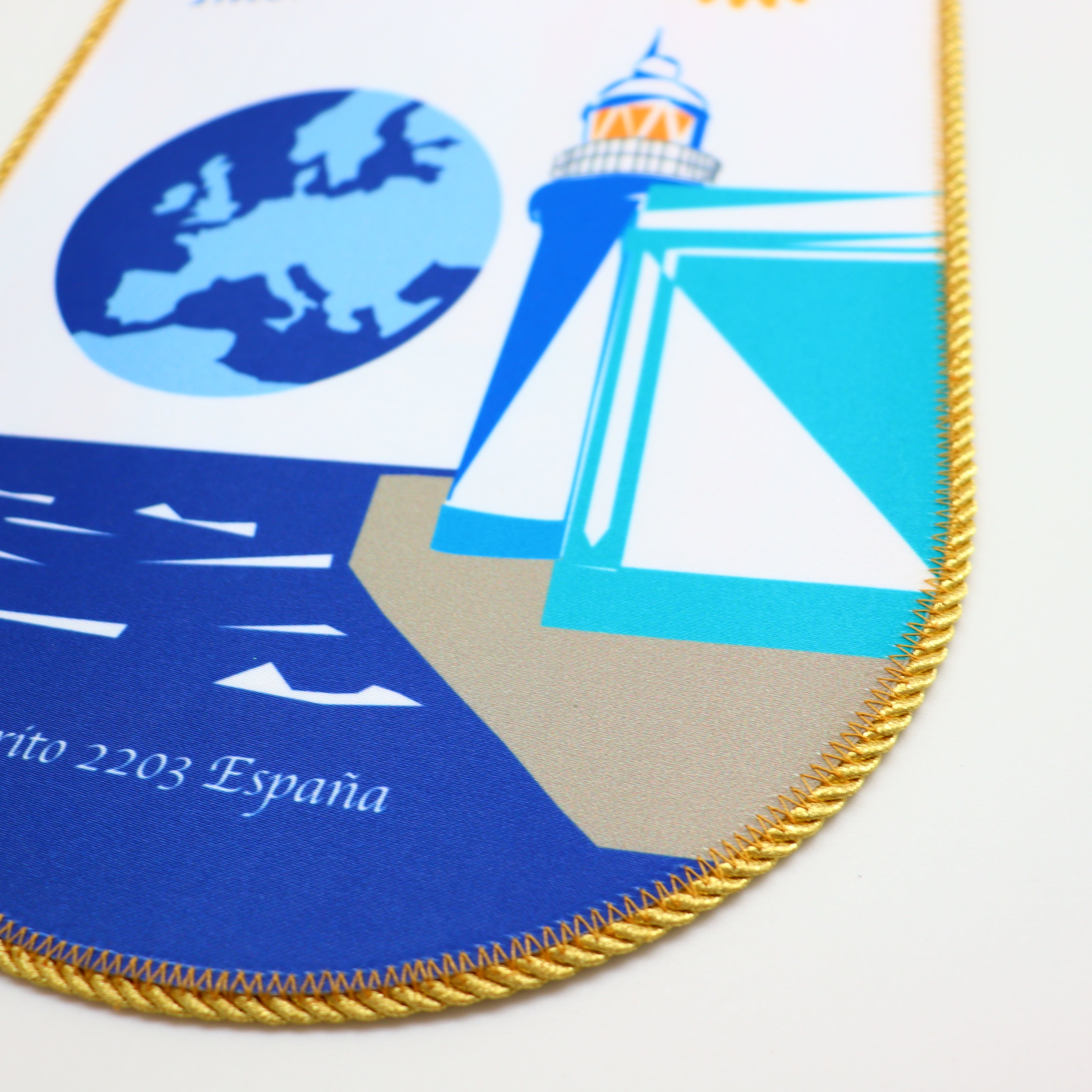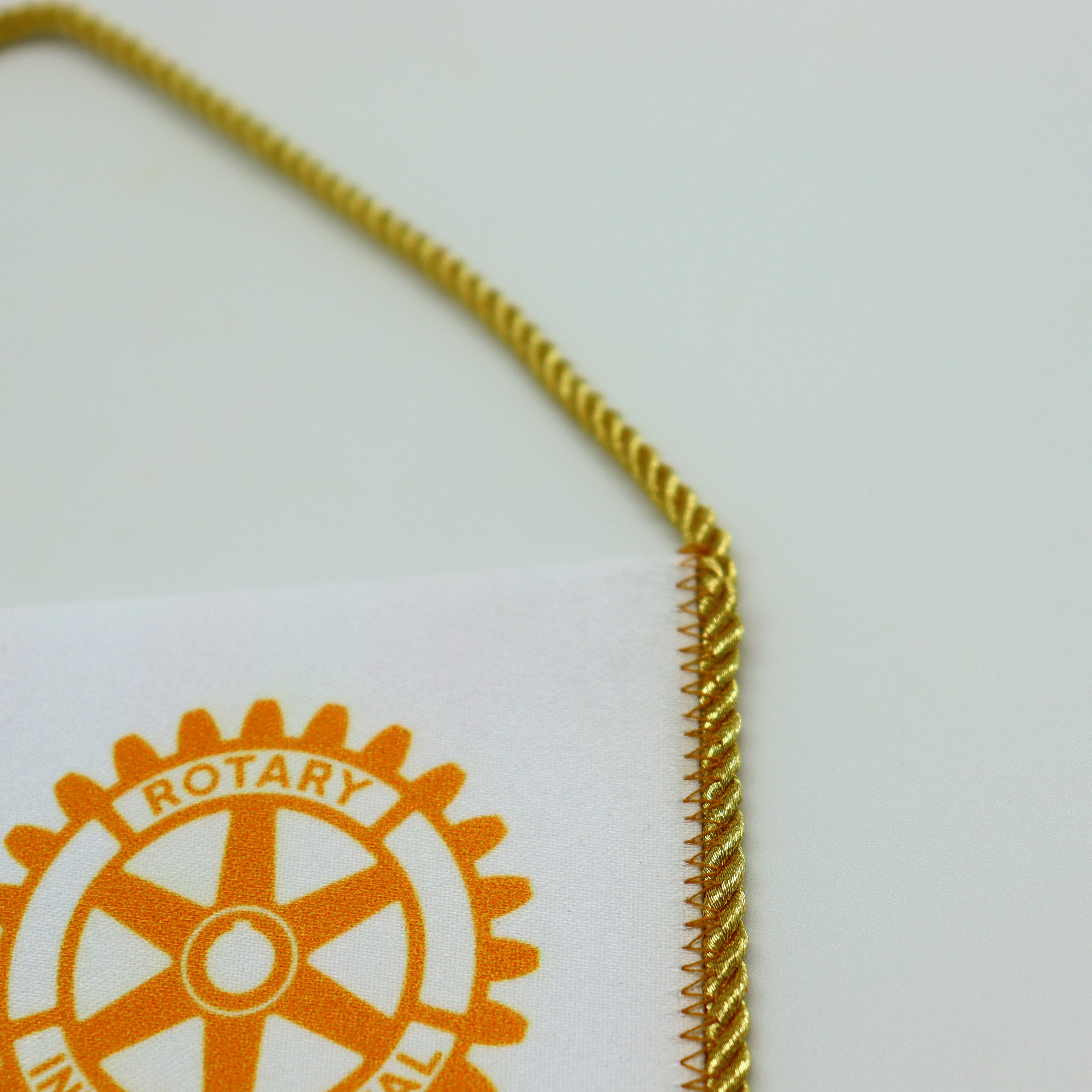 Premium Çift Taraflı Kristal Saten Kumaş Flama Afiş Oval Kesim Altın İplik