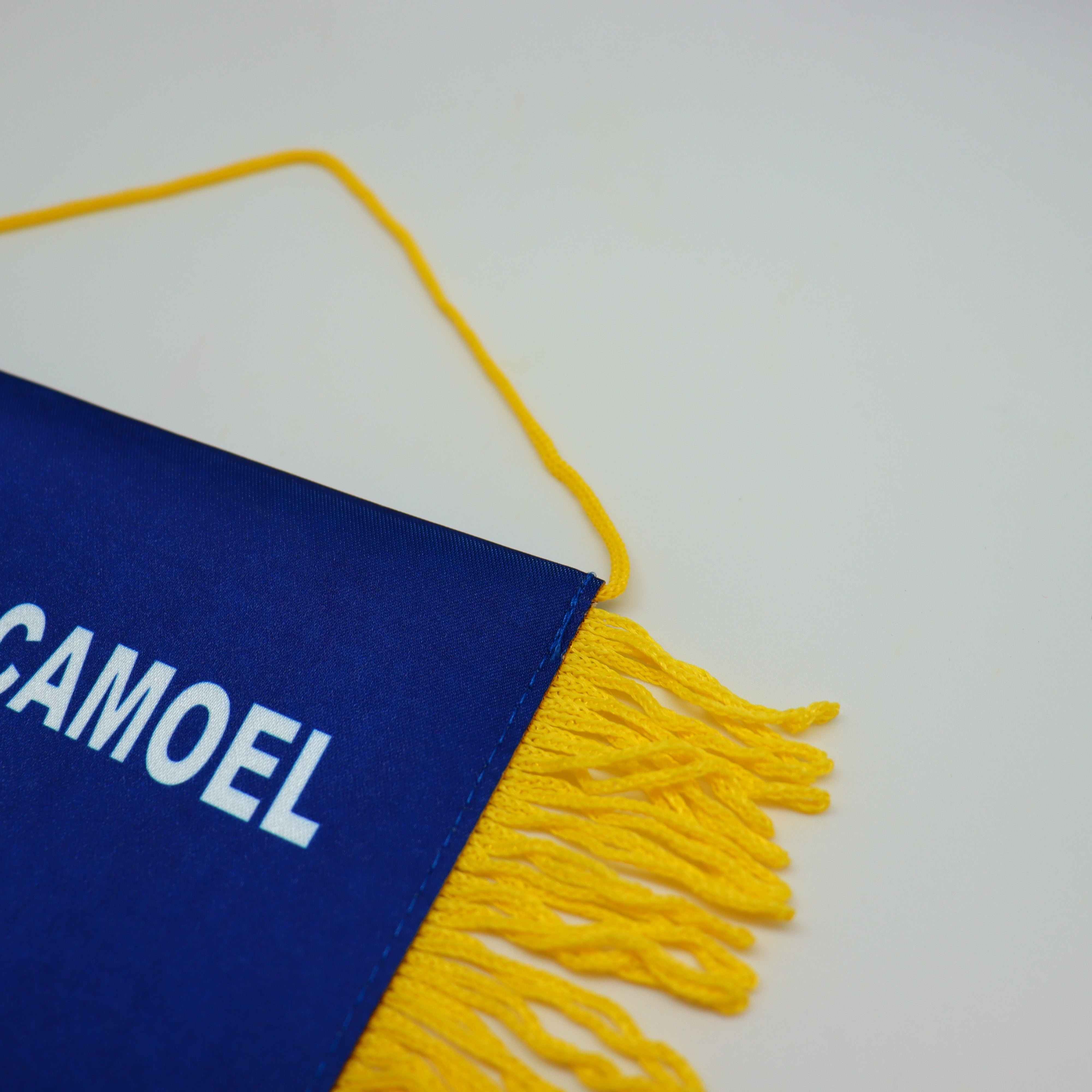 Premium Çift Taraflı Kristal Saten Flama Afiş Beşgen Kesim Sarı Saçaklı