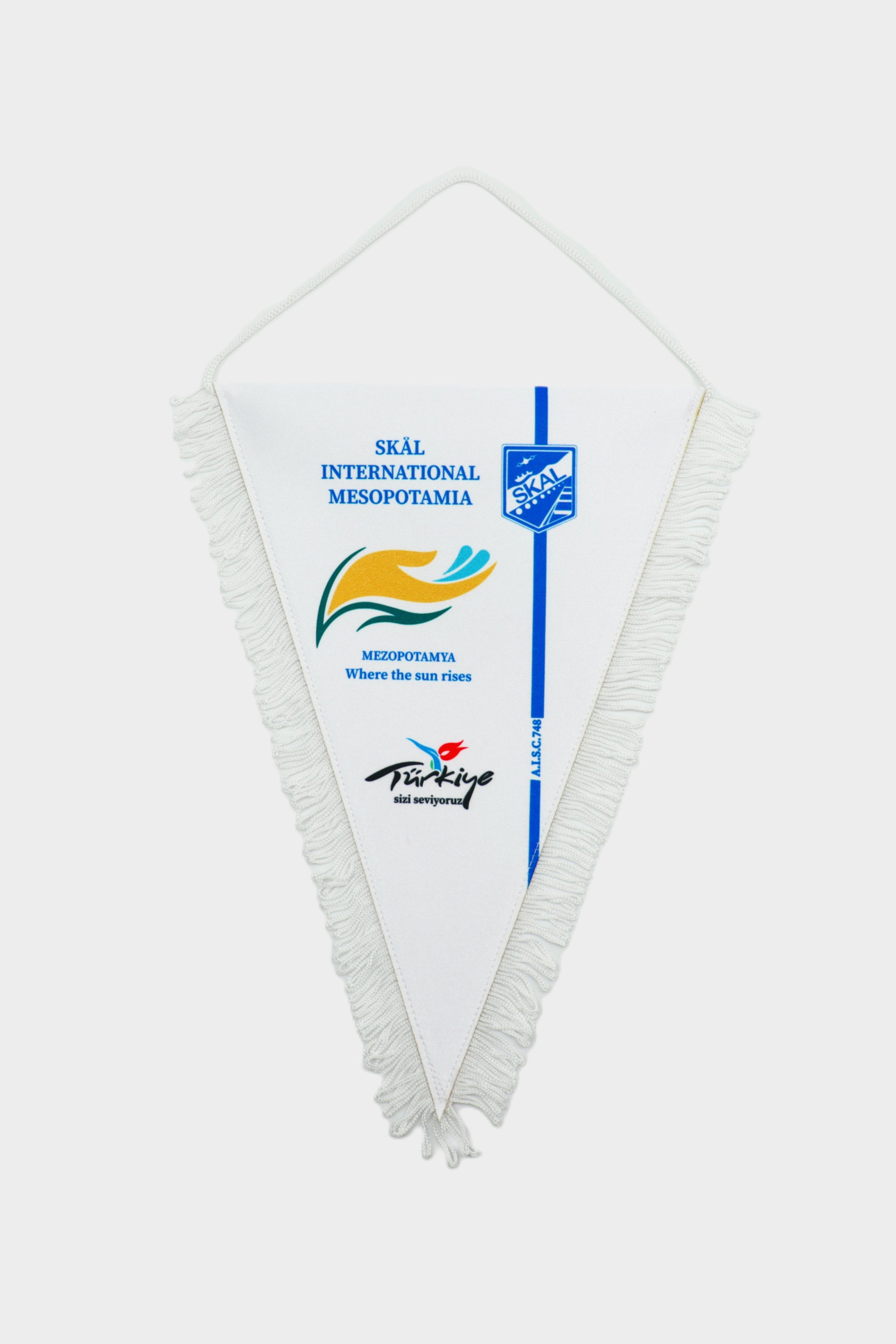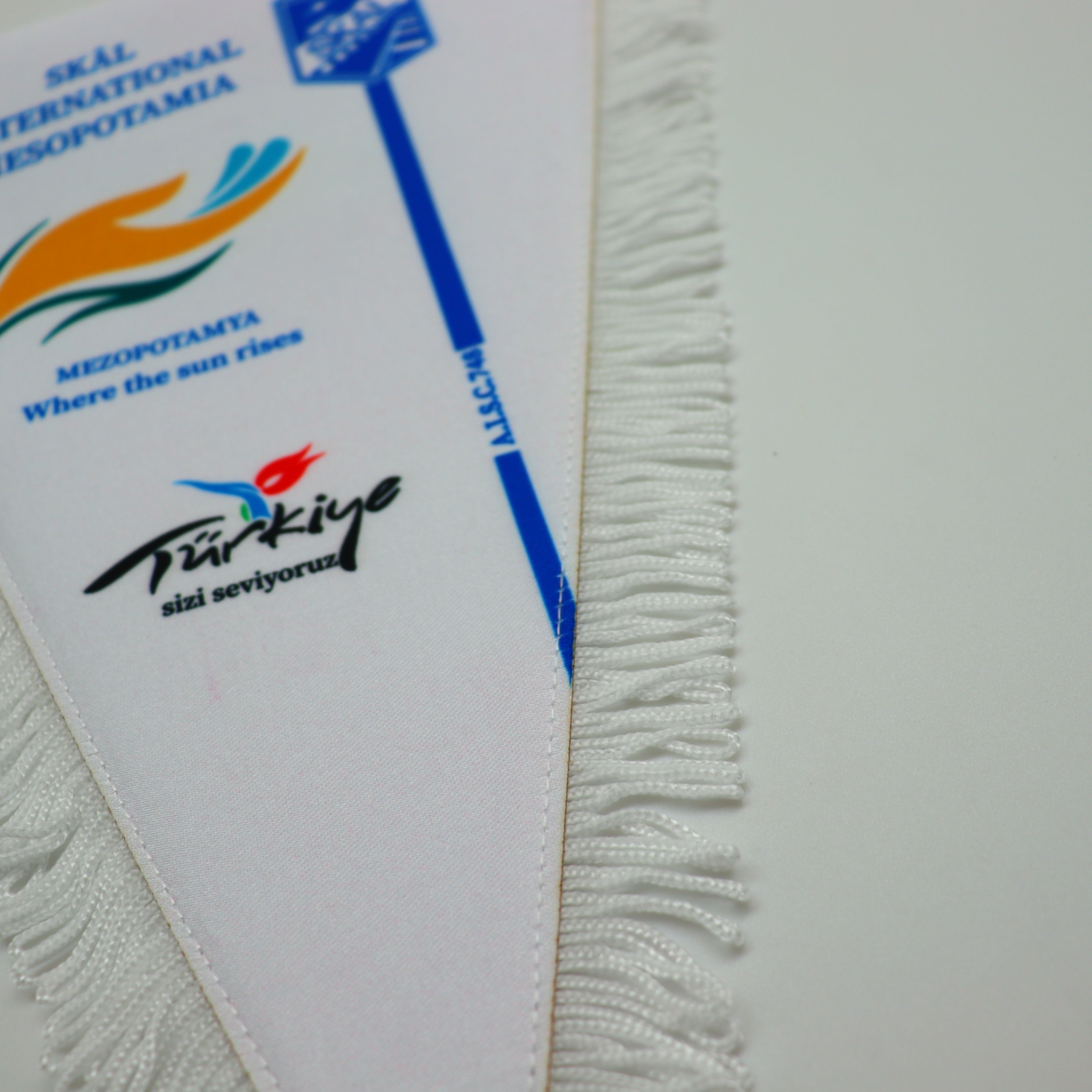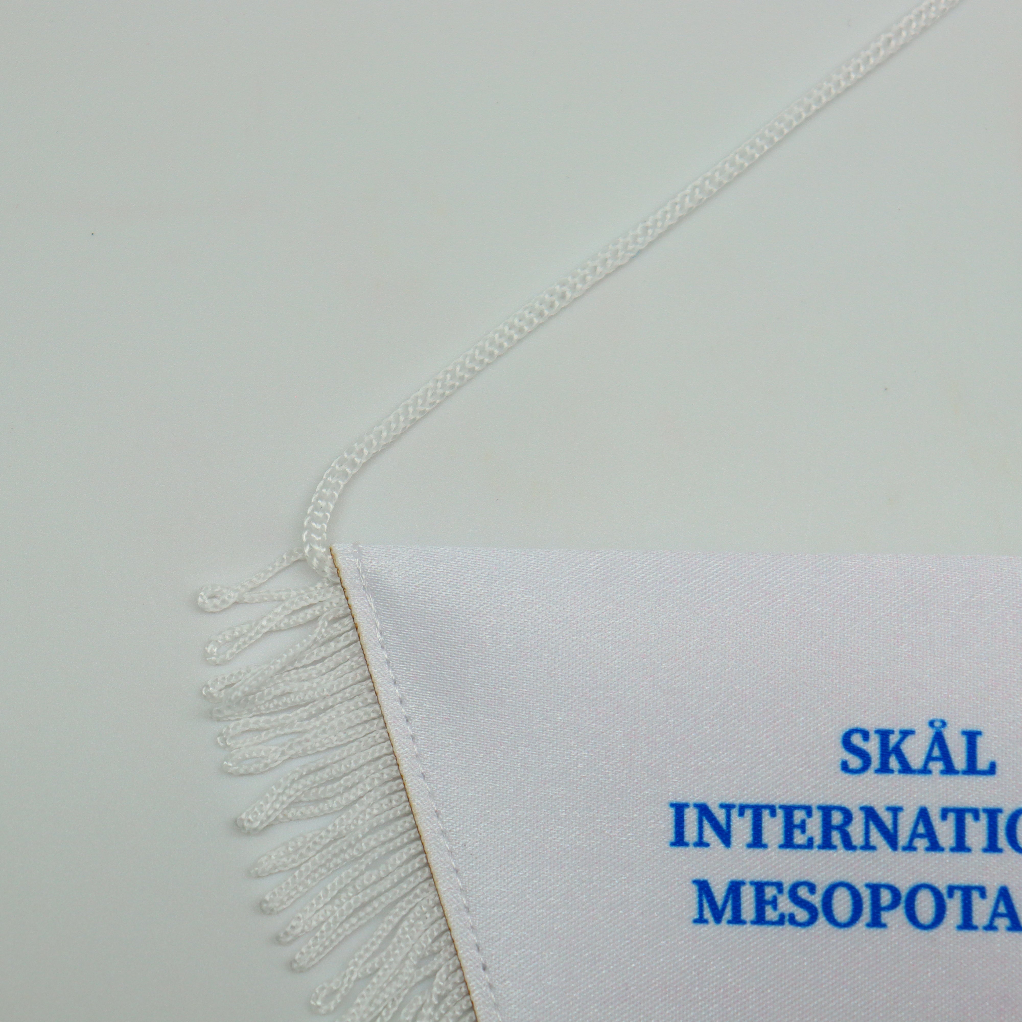 Üçgen Kesim Beyaz Saçaklı Premium Çift Taraflı Kristal Saten Flama Afiş