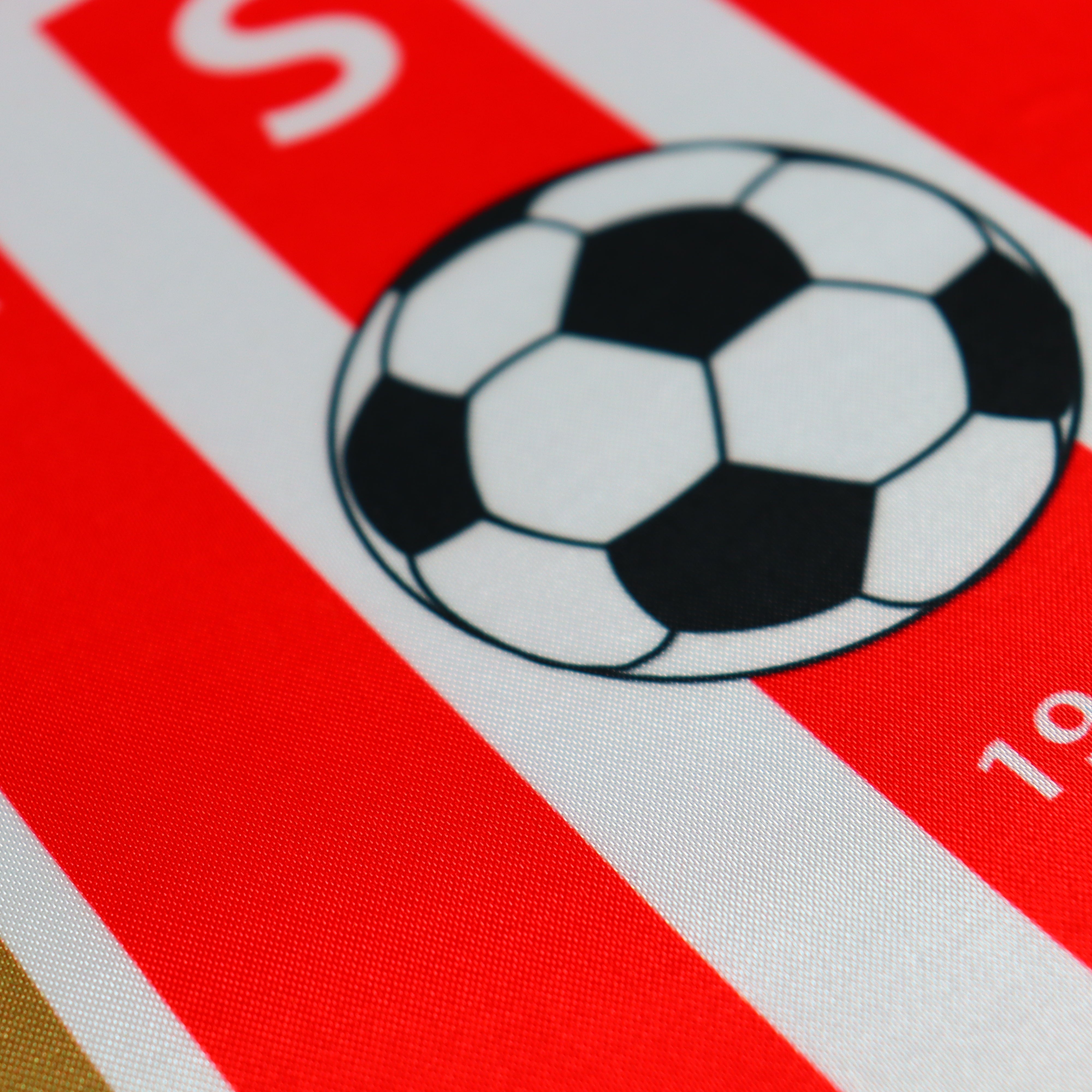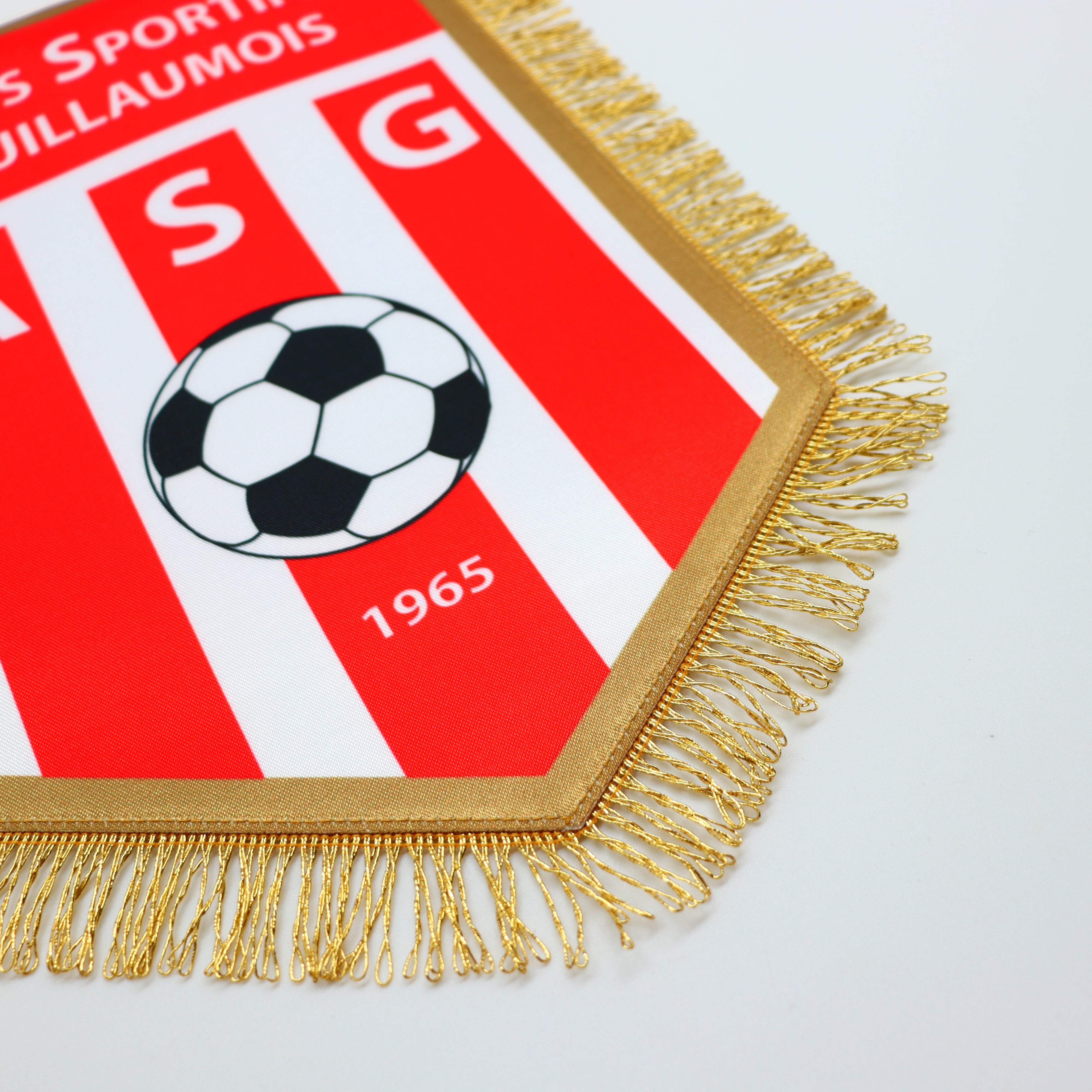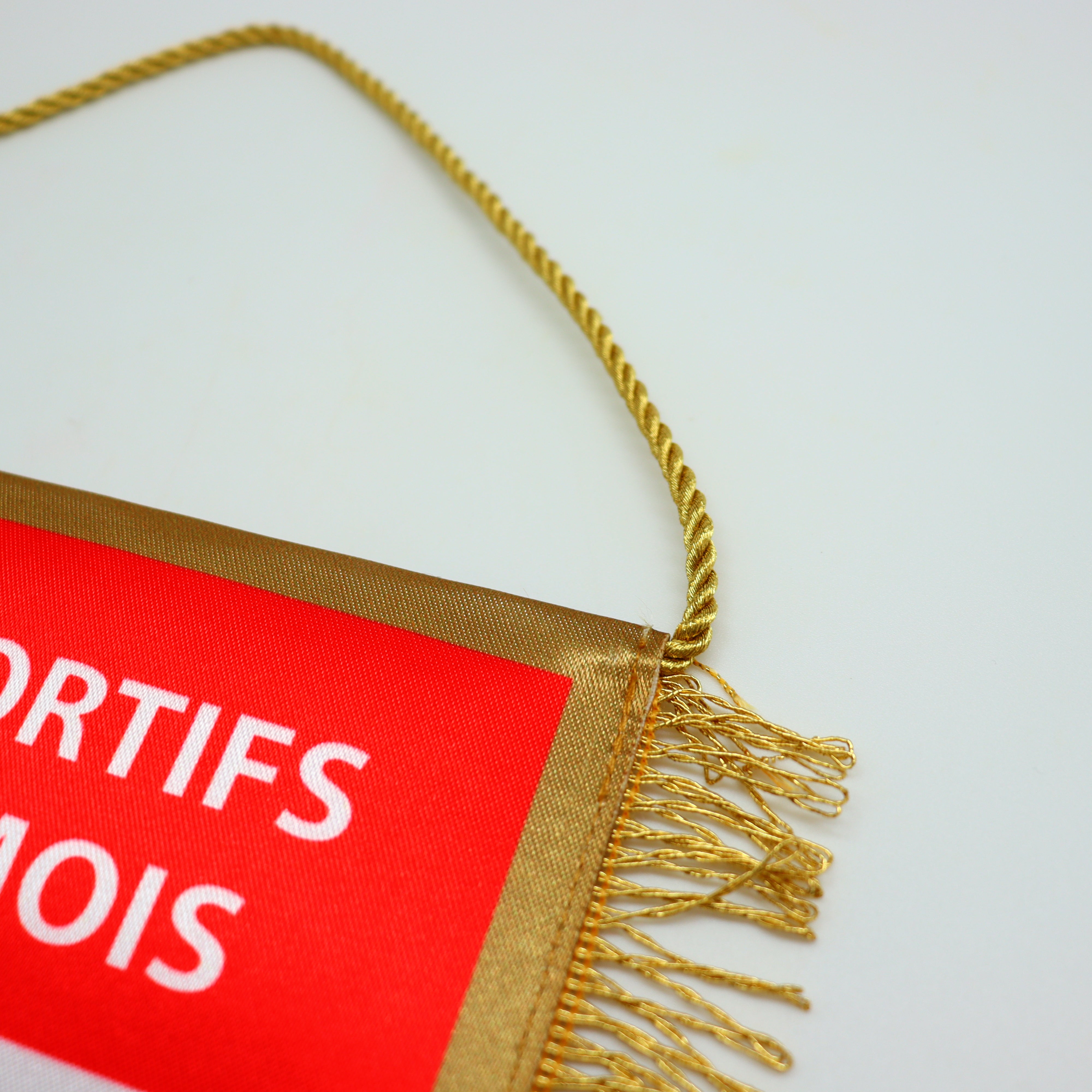 Premium Çift Taraflı Kristal Saten Flama Afiş Beşgen Kesim Altın Saçaklı