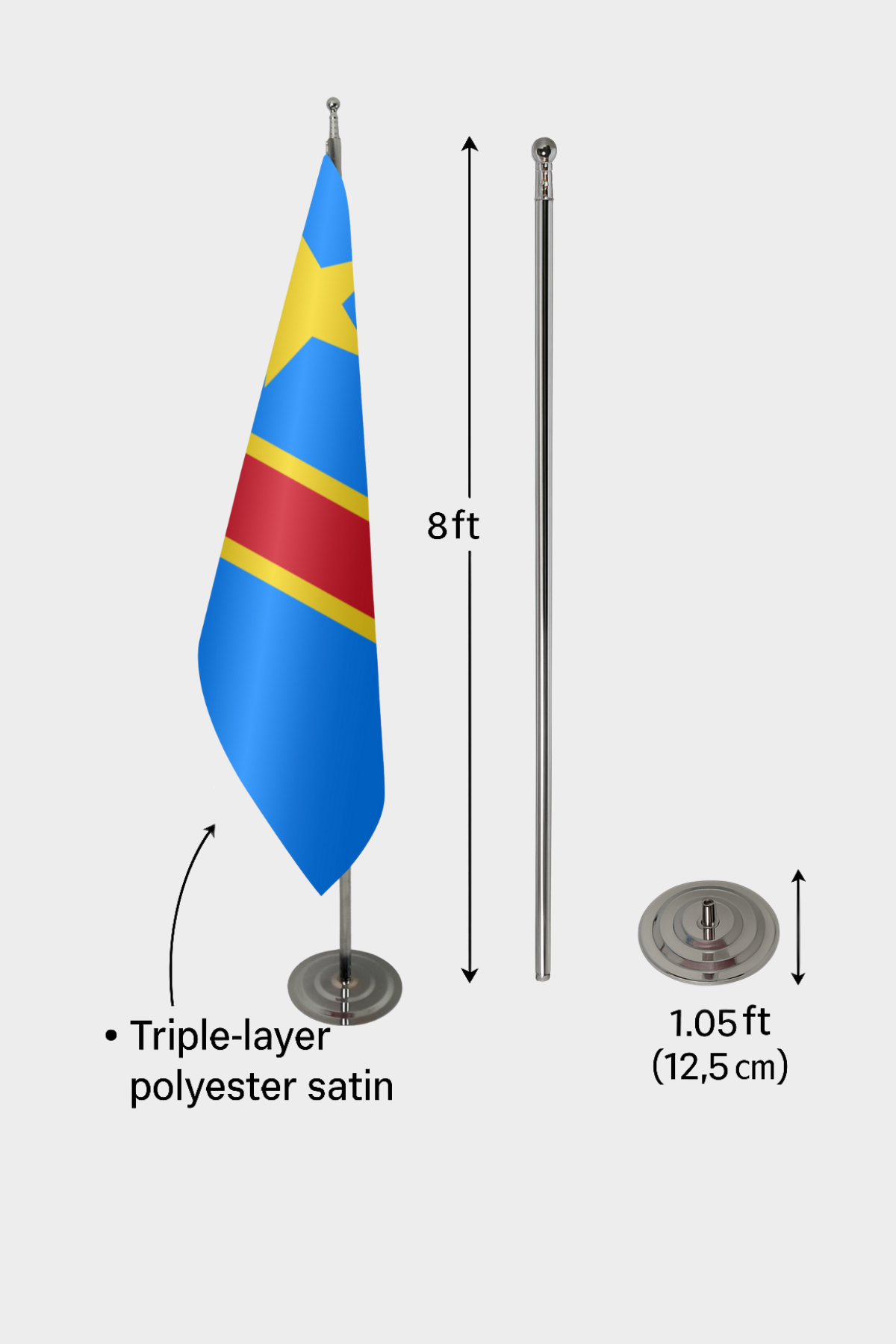 • Kumaş: Dayanıklı 3x5 ft (100x150 cm) çift katmanlı saten kumaş