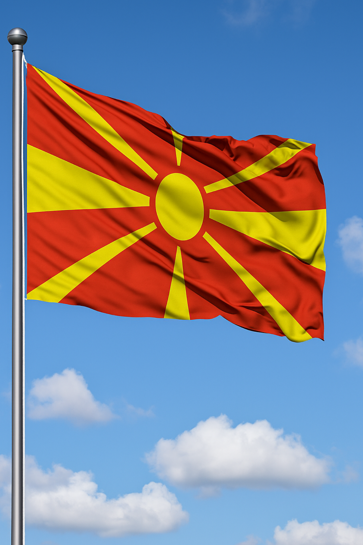 Birinci sınıf Raşel kumaş bayrağımızla Kuzey Makedonya ruhunu kutlayın. Dış mekan dayanıklılığı ve görsel etki için tasarlanan bu bayrak, resmi törenler, okullar, etkinlikler veya vatanseverlik gösterileri için mükemmeldir.
