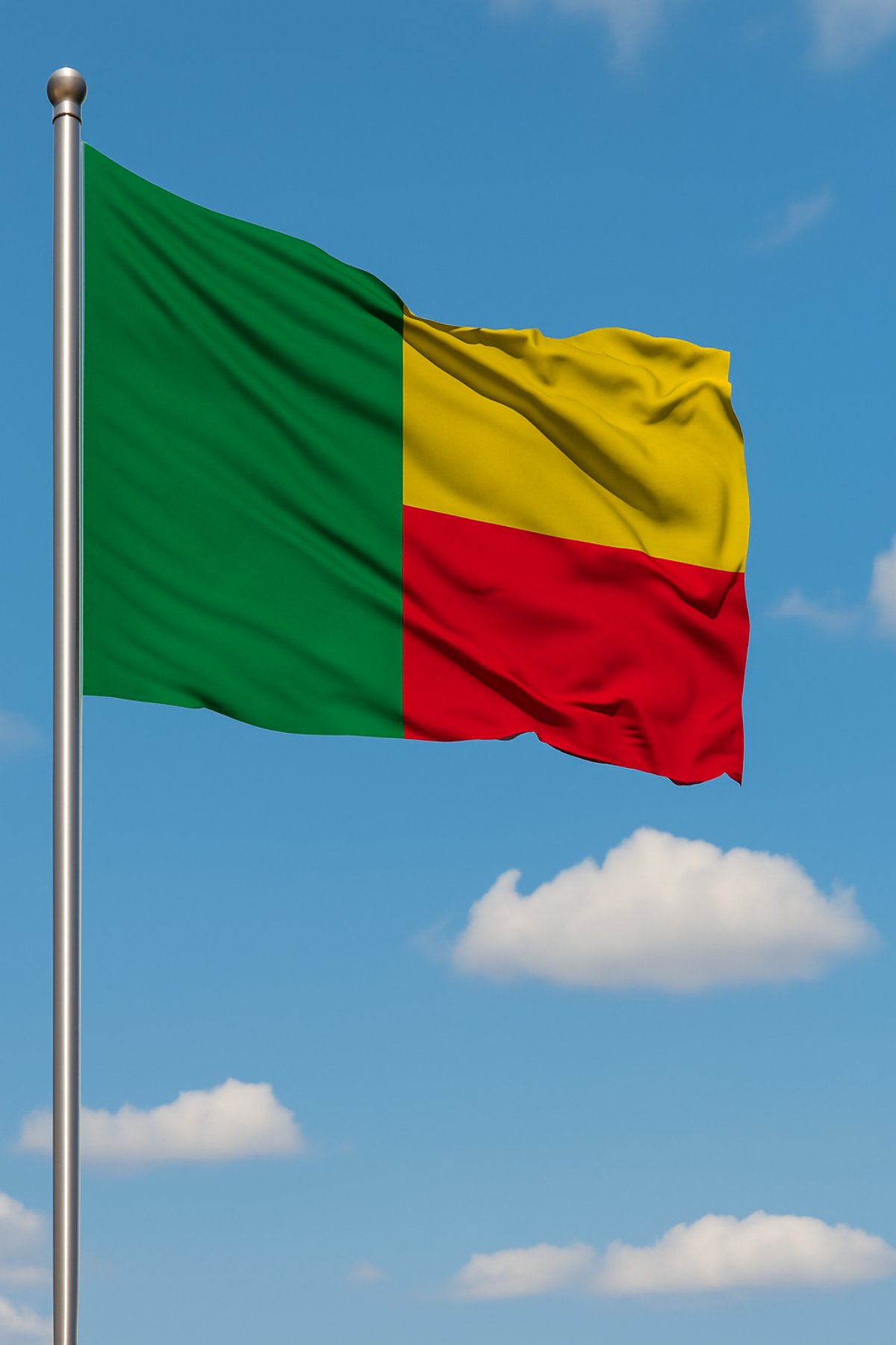 Ruhunu kutlayın Birinci sınıf Rashel kumaş bayrağımızla Benin. Dış mekan dayanıklılığı ve görsel etki için tasarlanan bu bayrak, resmi törenler, okullar, etkinlikler veya vatanseverlik gösterileri için mükemmeldir.