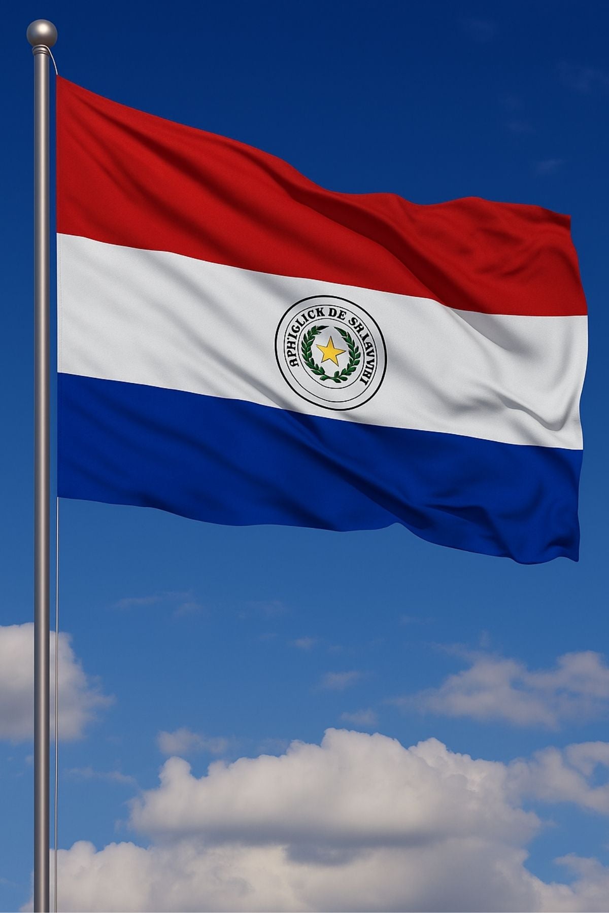Birinci sınıf Rashel kumaş bayrağımızla Paraguay ruhunu kutlayın. Dış mekan dayanıklılığı ve görsel etki için tasarlanan bu bayrak, resmi törenler, okullar, etkinlikler veya vatanseverlik gösterileri için mükemmeldir.
