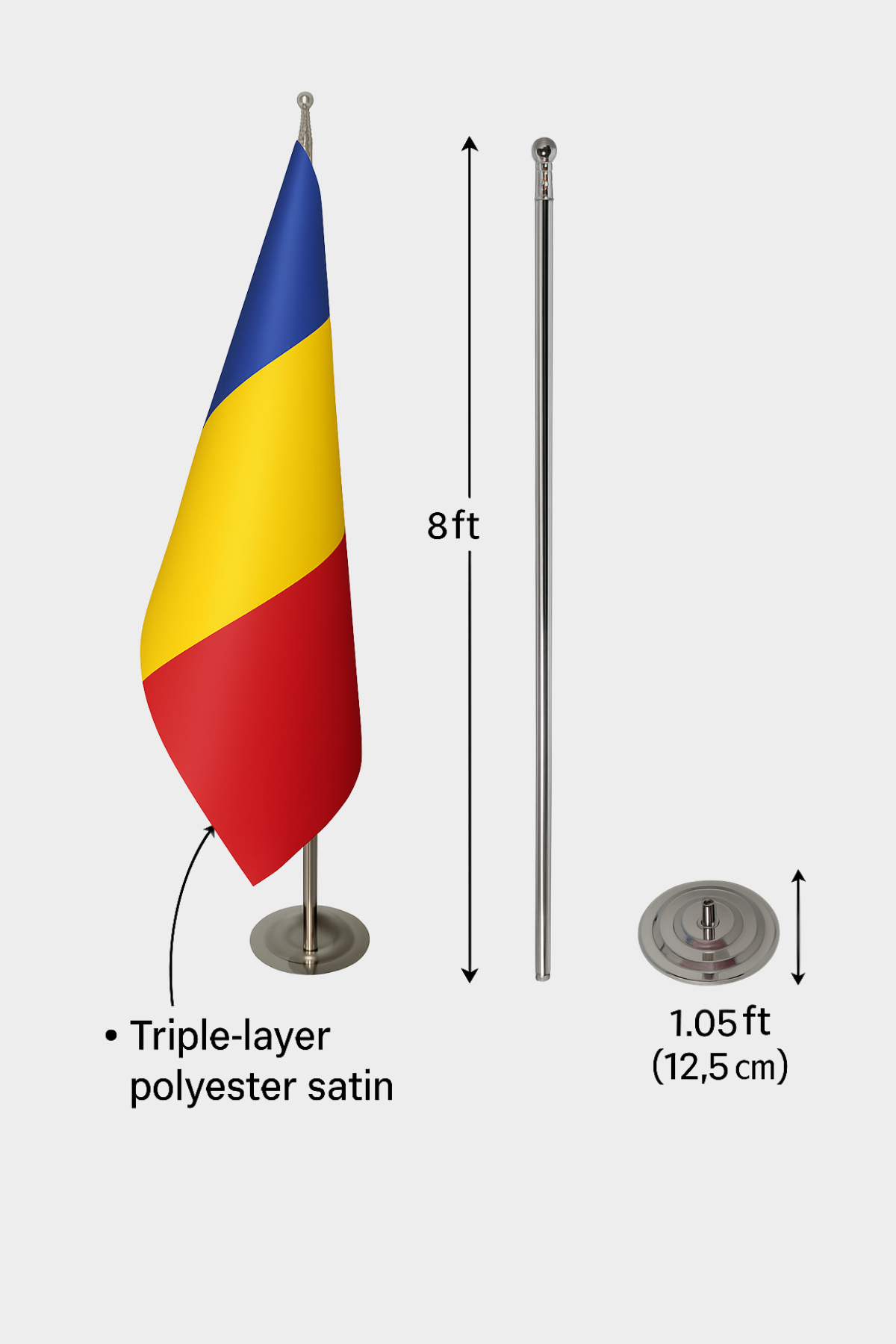 • Kumaş: Dayanıklı 3x5 ft (100x150 cm) çift katmanlı saten kumaş