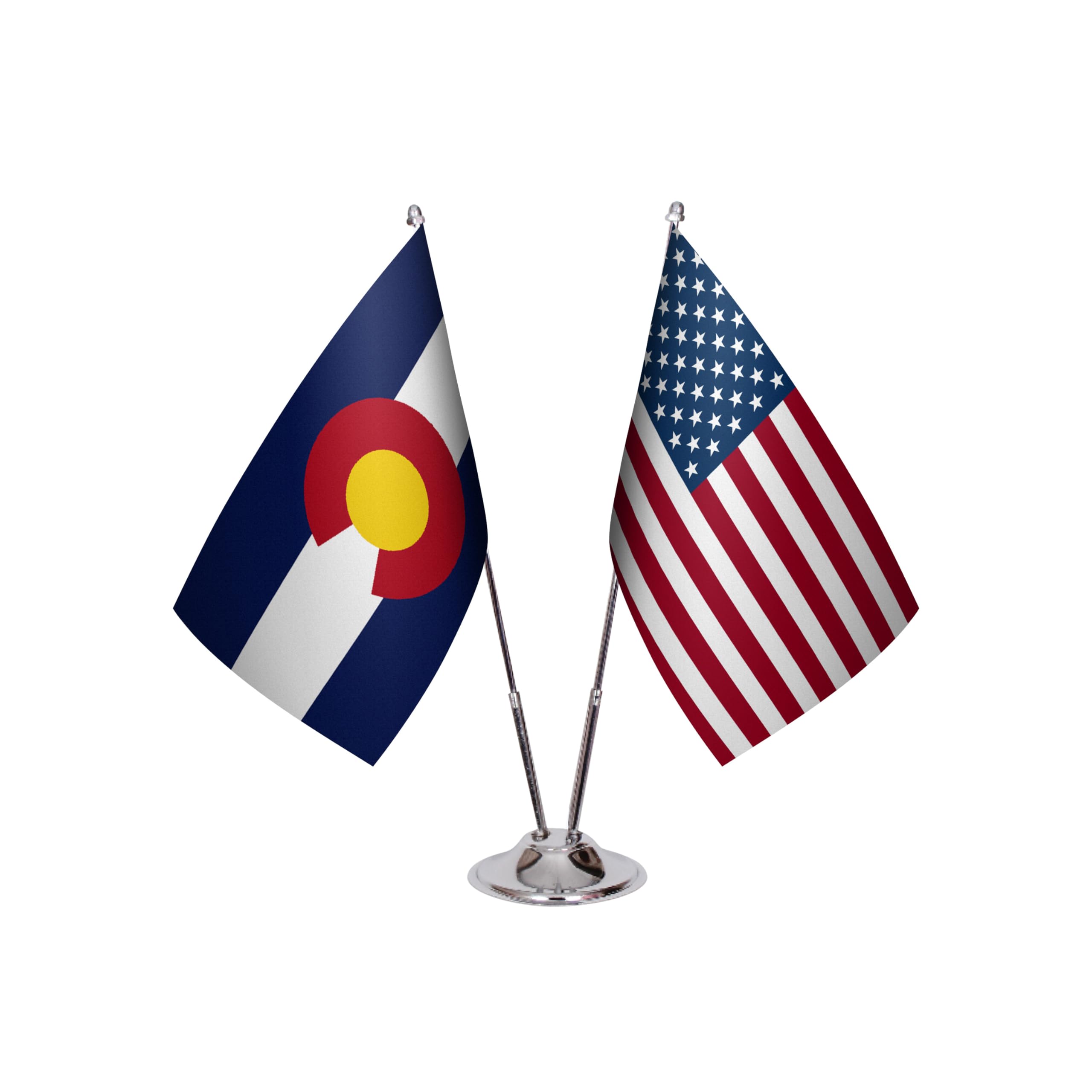 Mirasınızı ve vatanseverliğinizi bu Colorado ve ABD Bayrağı Masa Seti ile kutlayın - eyalet bayrağı ile Amerikan bayrağının yan yana mükemmel bir kombinasyonu.