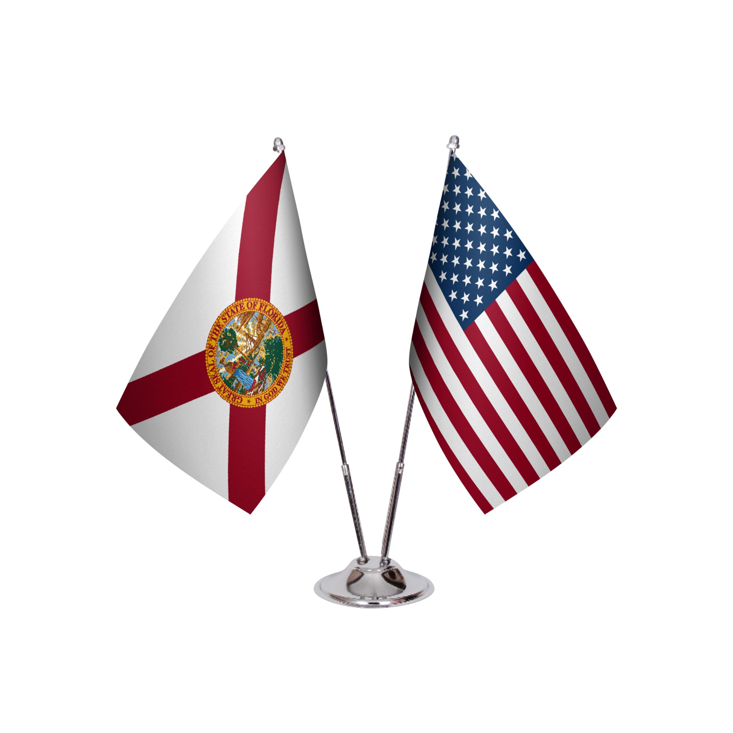 Mirasınızı ve vatanseverliğinizi bu Florida ve ABD Bayrağı Masa Seti ile kutlayın - eyalet bayrağı ile Amerikan bayrağının yan yana mükemmel bir kombinasyonu.