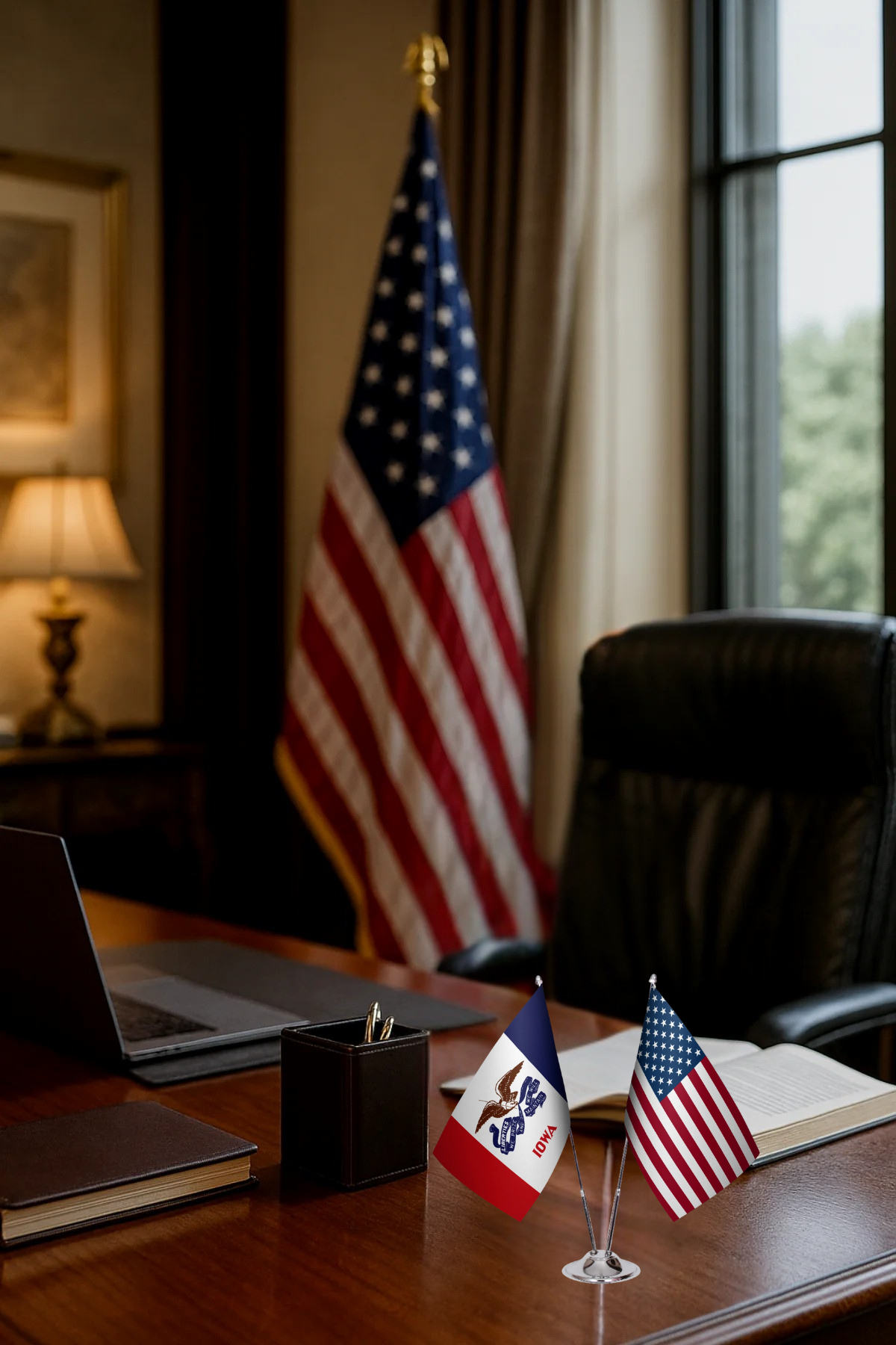 Iowa ve ABD Masa Bayrağı Seti