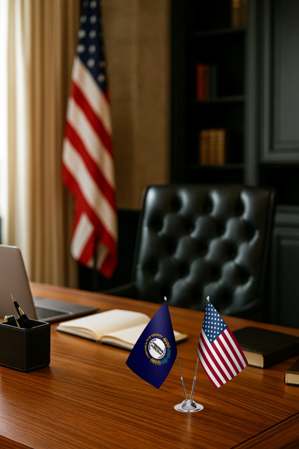 Mirasınızı ve vatanseverliğinizi bu Kentucky ve ABD Bayrağı Masa Seti ile kutlayın - eyalet bayrağı ile Amerikan bayrağının yan yana mükemmel bir kombinasyonu.
