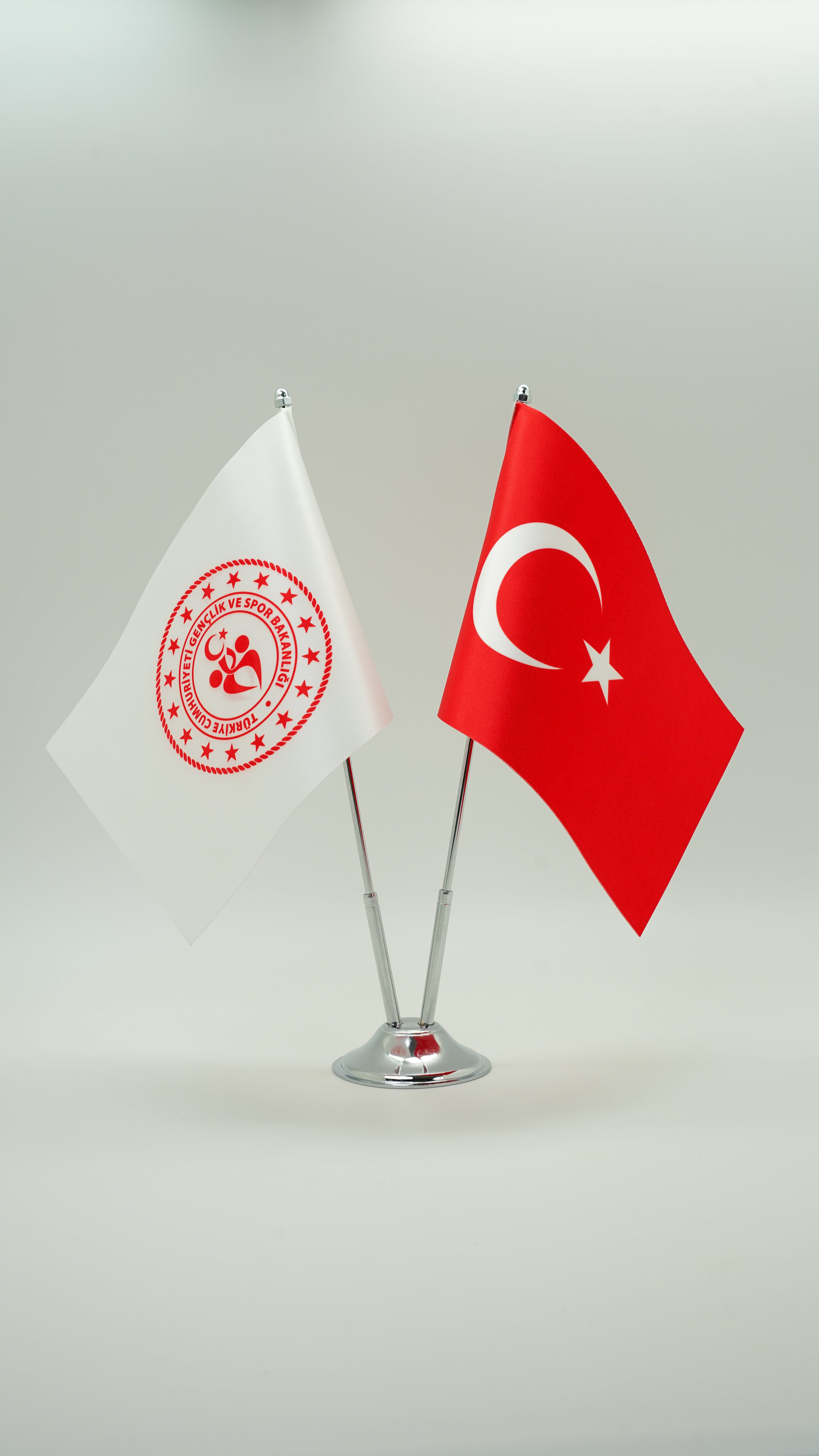 Özelleştirilebilir İkili Masa Bayrağı – Türk Bayrağı & Logonuz