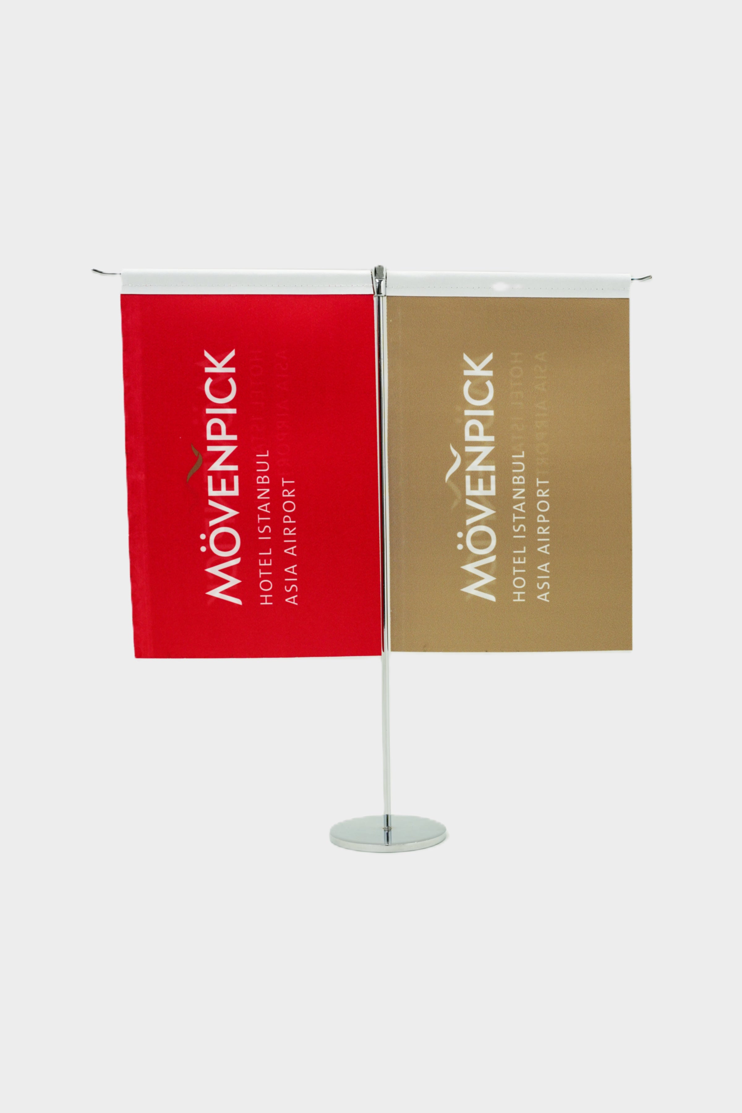 Masa Bayrağı – Saten Kumaş, Krom Direk ve Metal Taban