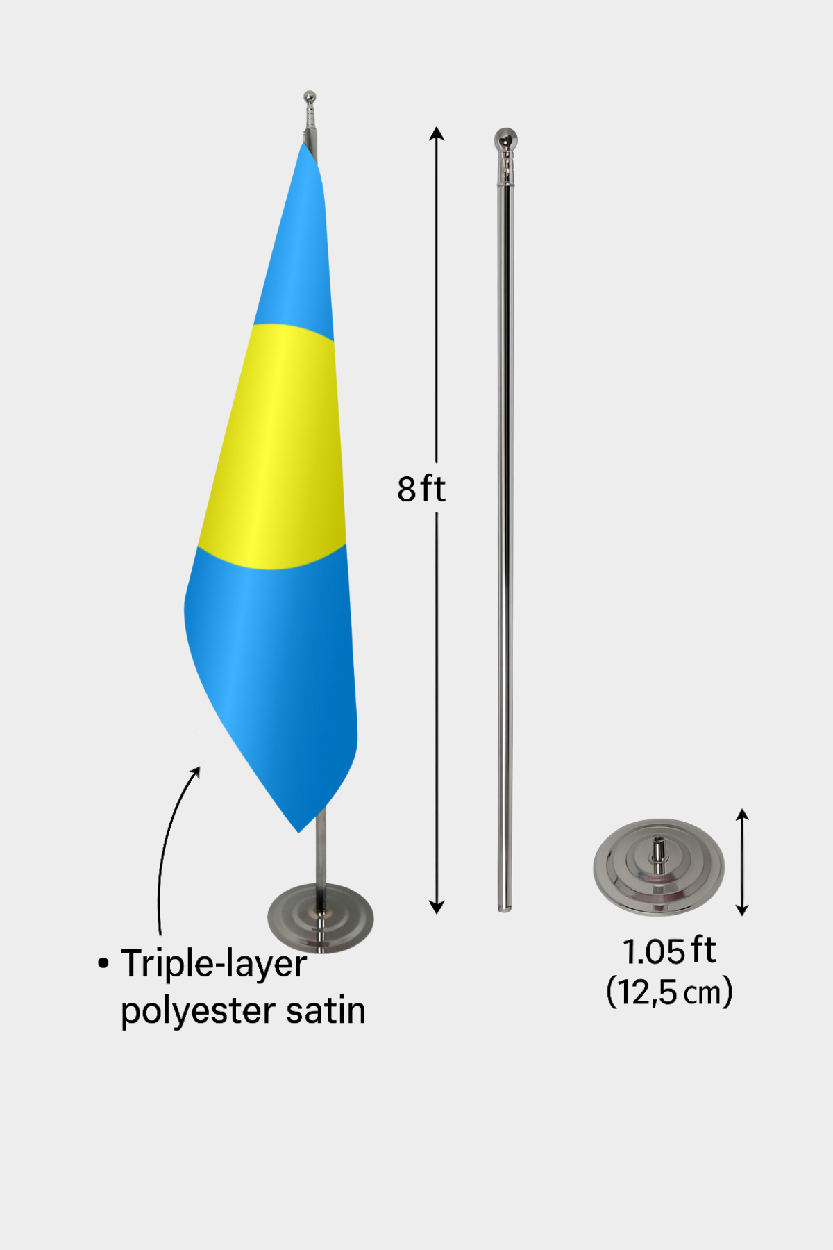 • Kumaş: Dayanıklı 3x5 ft (100x150 cm) çift katmanlı saten kumaş