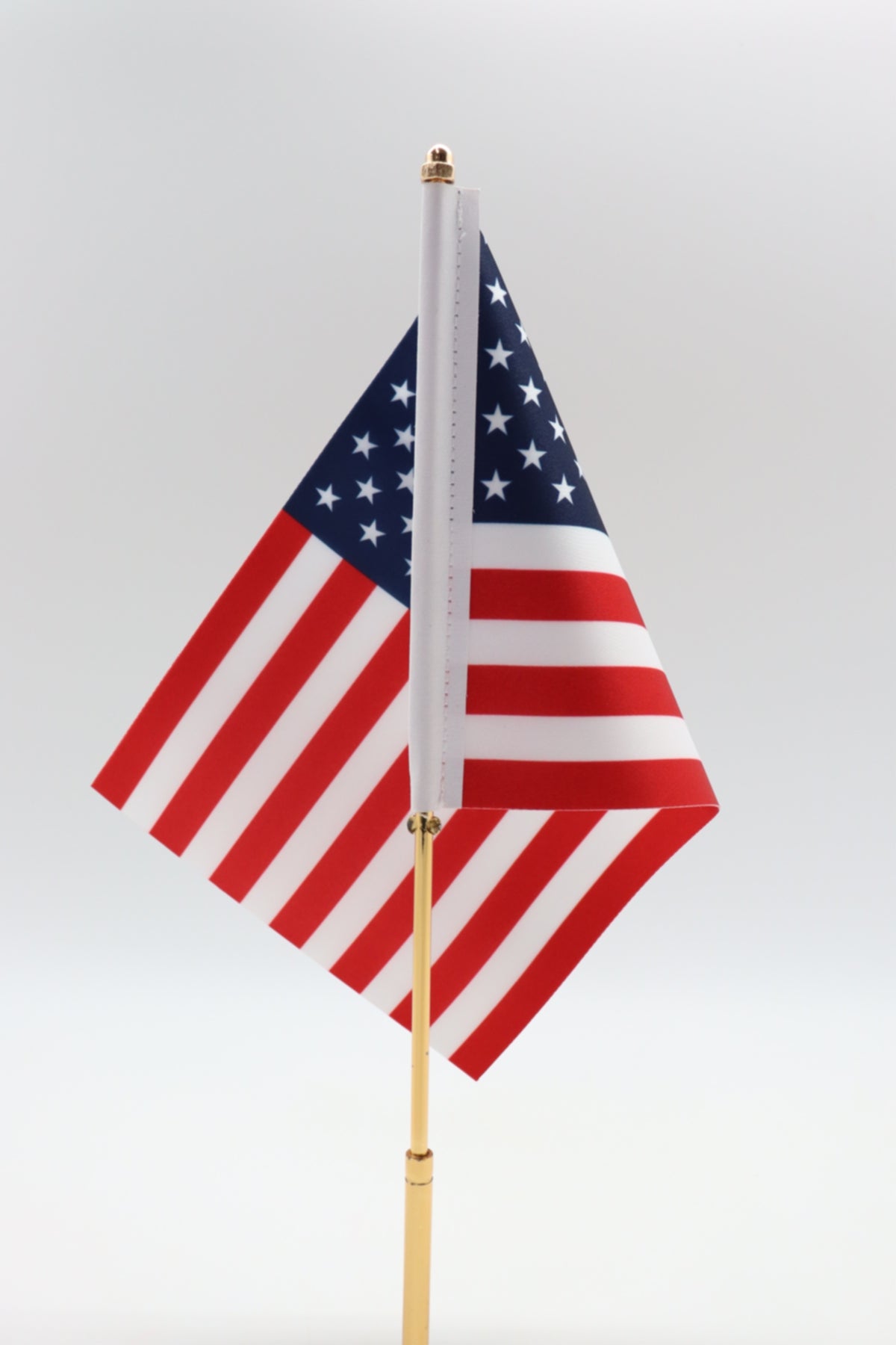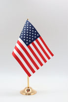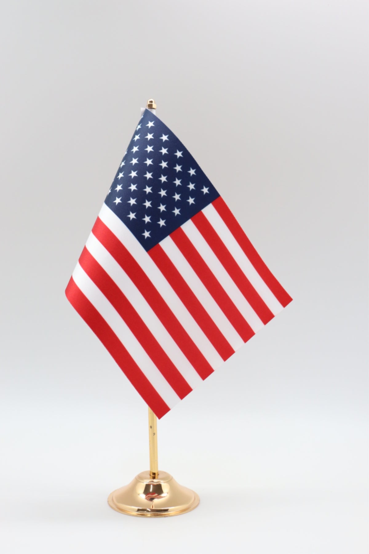 Lüks Amerika Birleşik Devletleri Masa Bayrağı - Birinci Sınıf Saten Kumaş - Altın Renkli Metal Direk ve Taban - Ofis ve Etkinlikler için Şık 6 x 9 inç Amerikan Masa Bayrağı