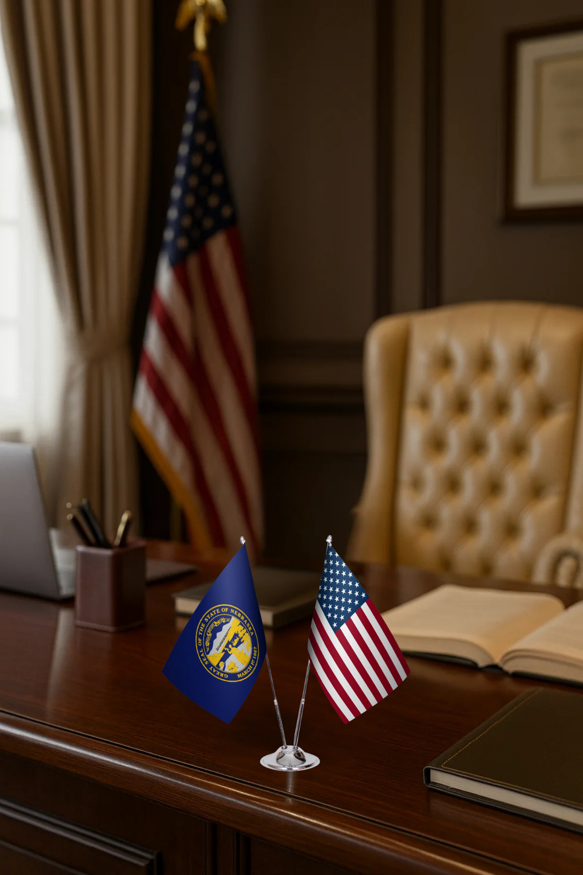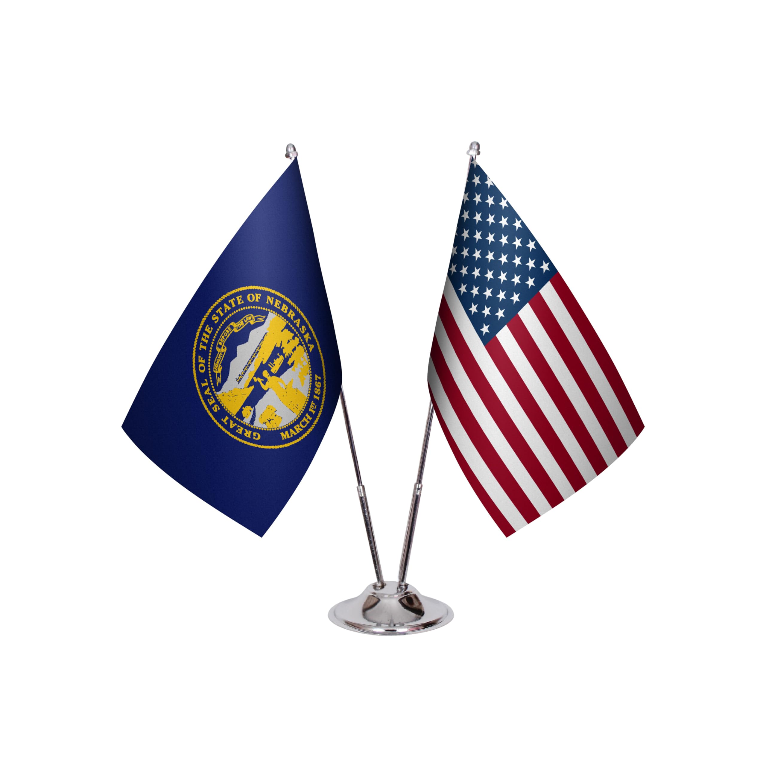 Mirasınızı ve vatanseverliğinizi Nebraska ve ABD Bayrağı Masa Seti ile kutlayın; eyalet bayrağı ile Amerikan bayrağının yan yana mükemmel birleşimi.