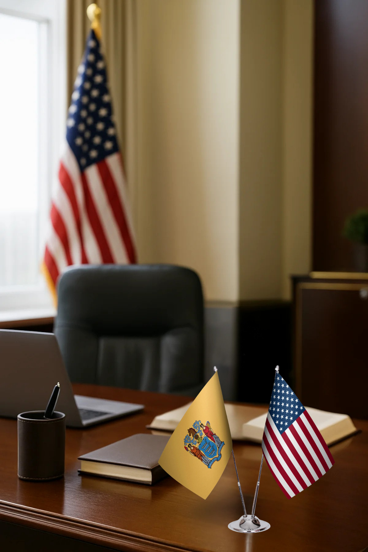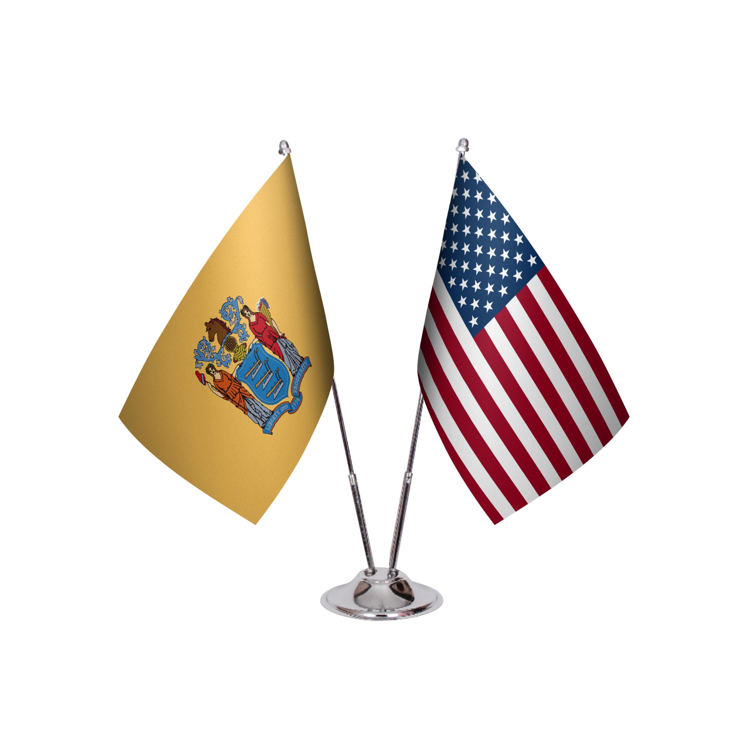 Mirasınızı ve vatanseverliğinizi bu New Jersey ve ABD Bayrağı Masa Seti ile kutlayın - eyalet bayrağı ile Amerikan bayrağının yan yana mükemmel bir kombinasyonu.