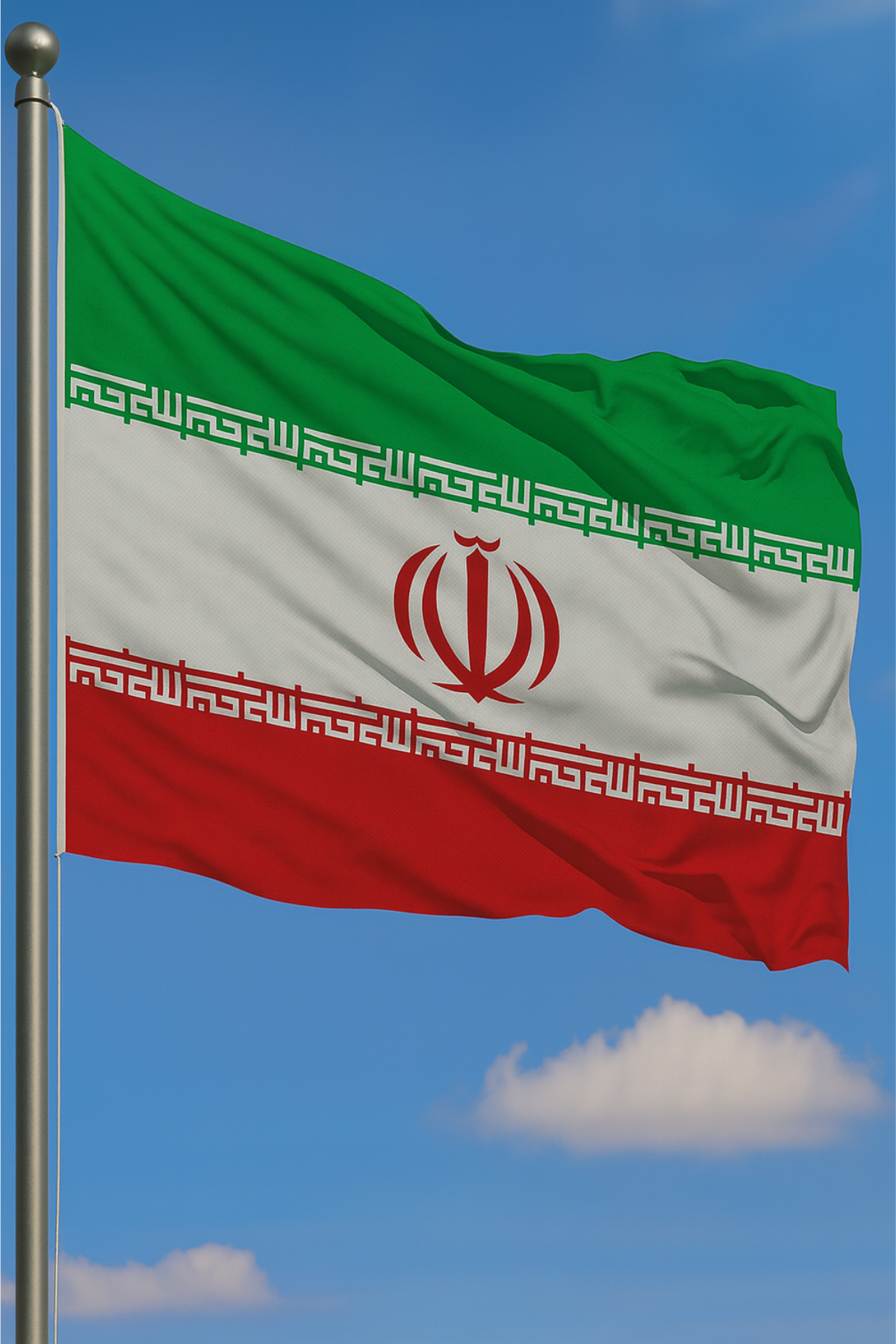 Yeşil, beyaz ve kırmızı yatay şeritleriyle ortasındaki kırmızı ulusal sembol, İran’ın kültürel mirasını ve bağımsızlık ruhunu temsil eder. Şeritler boyunca yer alan “Allahu Ekber” yazıları ise derin bir anlam ve kimlik kazandırır. Dış mekân koşullarına karşı üstün dayanıklılığı sayesinde uzun ömürlü kullanım sunar.