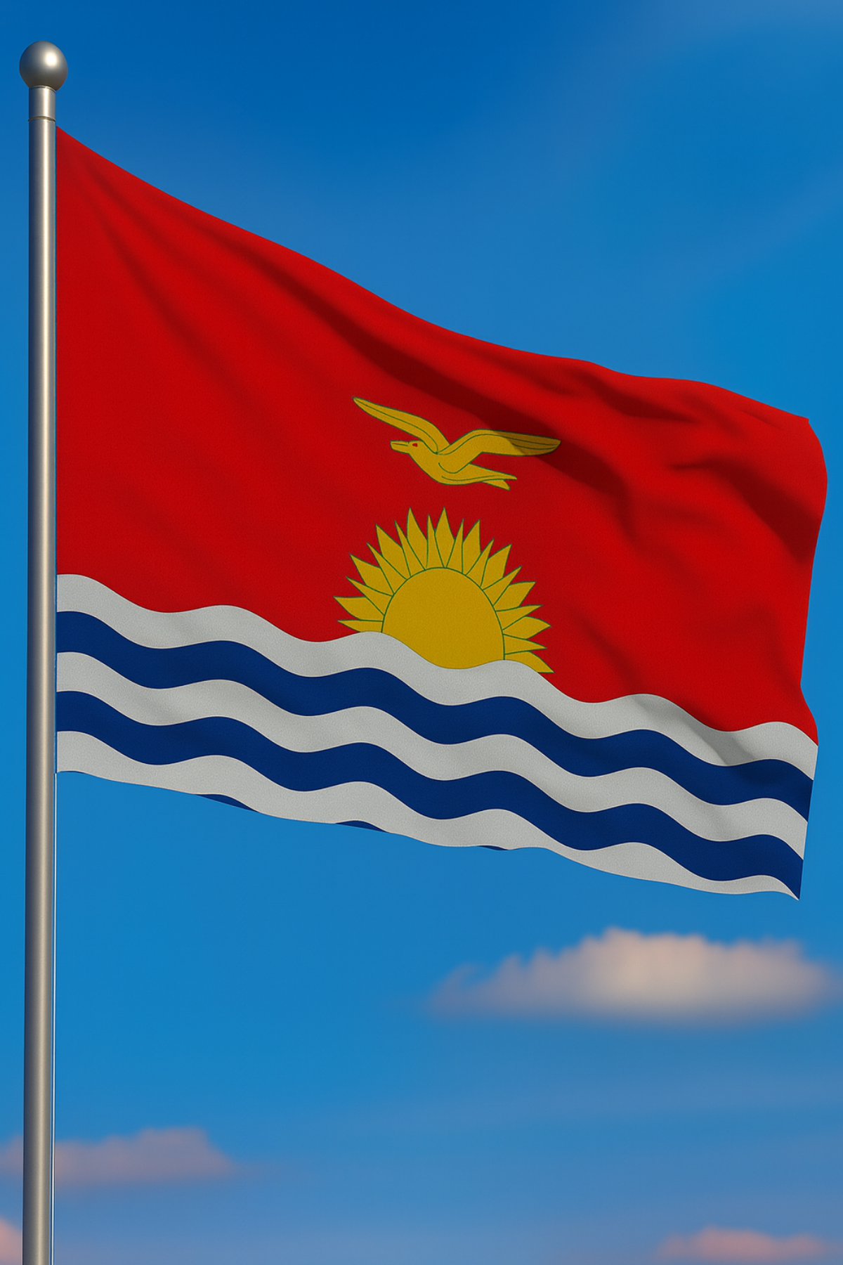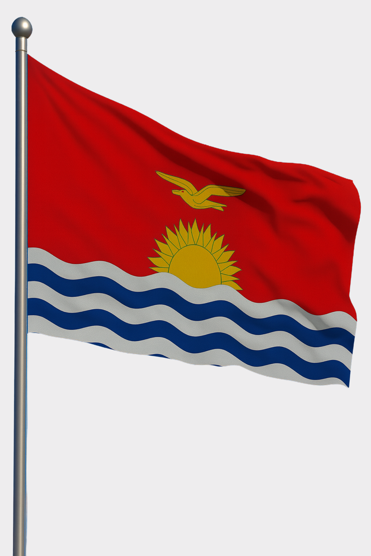 Kırmızı zemini, ortasındaki sarı güneş ve uçan kuş sembolüyle alt kısmındaki beyaz-mavi dalga desenleri, Kiribati’nin Pasifik Okyanusu’yla iç içe kültürünü simgeler. Dış mekân koşullarına karşı üstün dayanıklılığı sayesinde uzun ömürlü kullanım sunar.