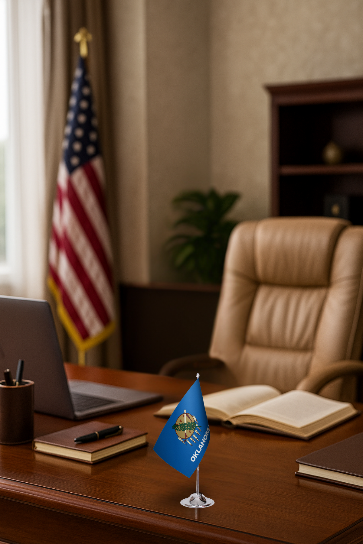 Bu zarif Oklahoma Eyalet Masa Bayrağı ile eyalet gururunuzu gösterin.