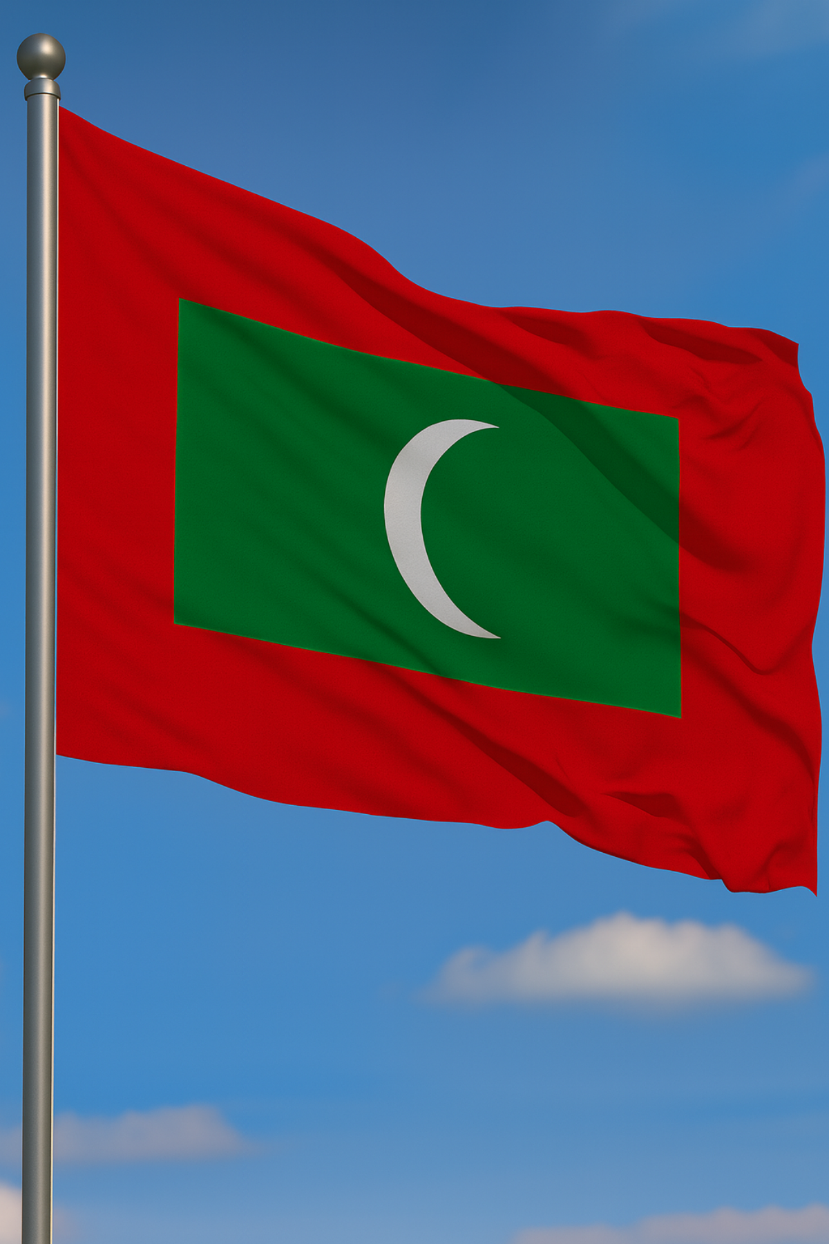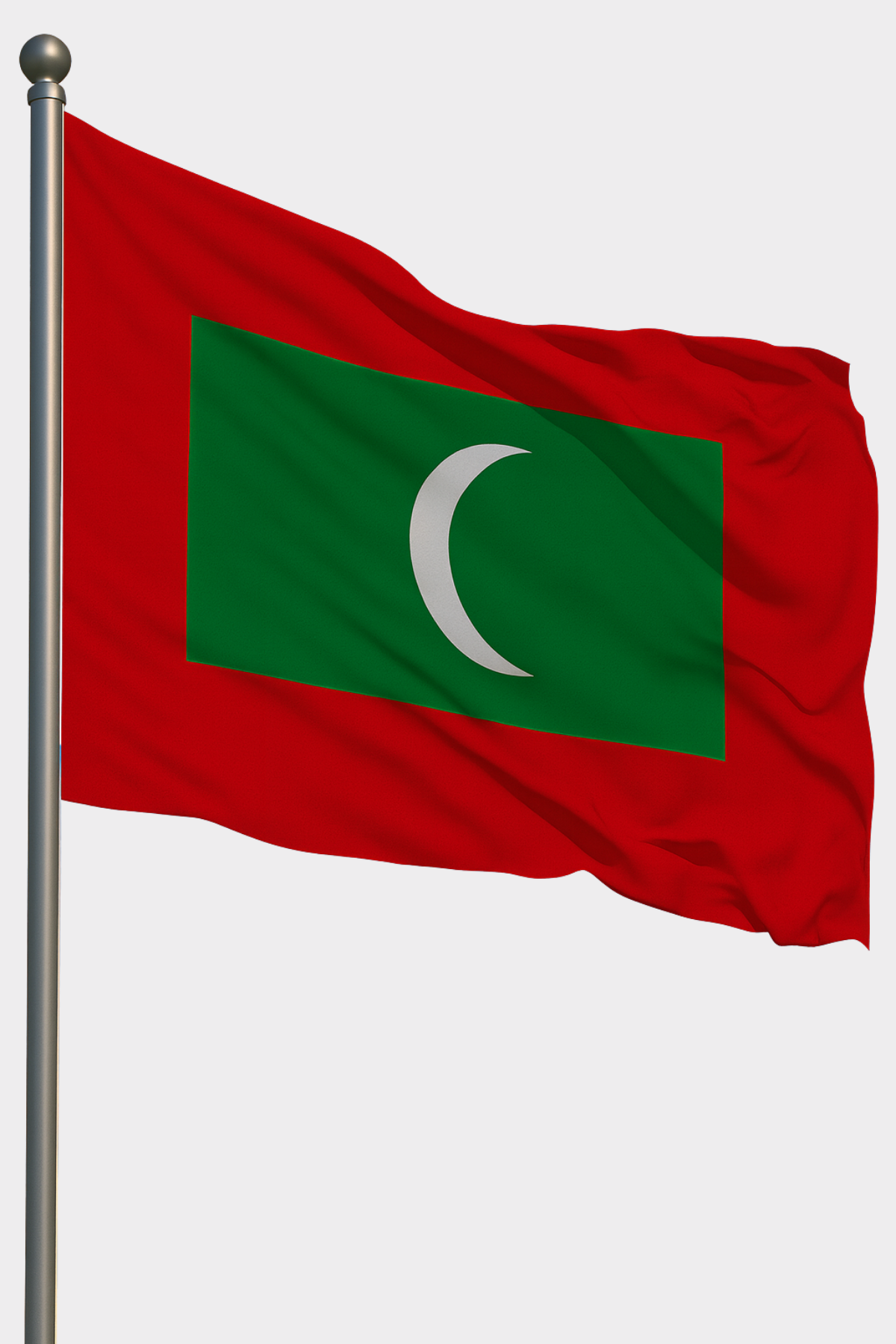 Kırmızı zemini, ortasındaki yeşil dikdörtgen ve beyaz hilal sembolüyle tanınan bu bayrak, Maldivler’in barış, inanç ve bağımsızlık değerlerini simgeler. Dış mekân koşullarına karşı üstün dayanıklılığı sayesinde uzun yıllar boyunca canlılığını korur.
