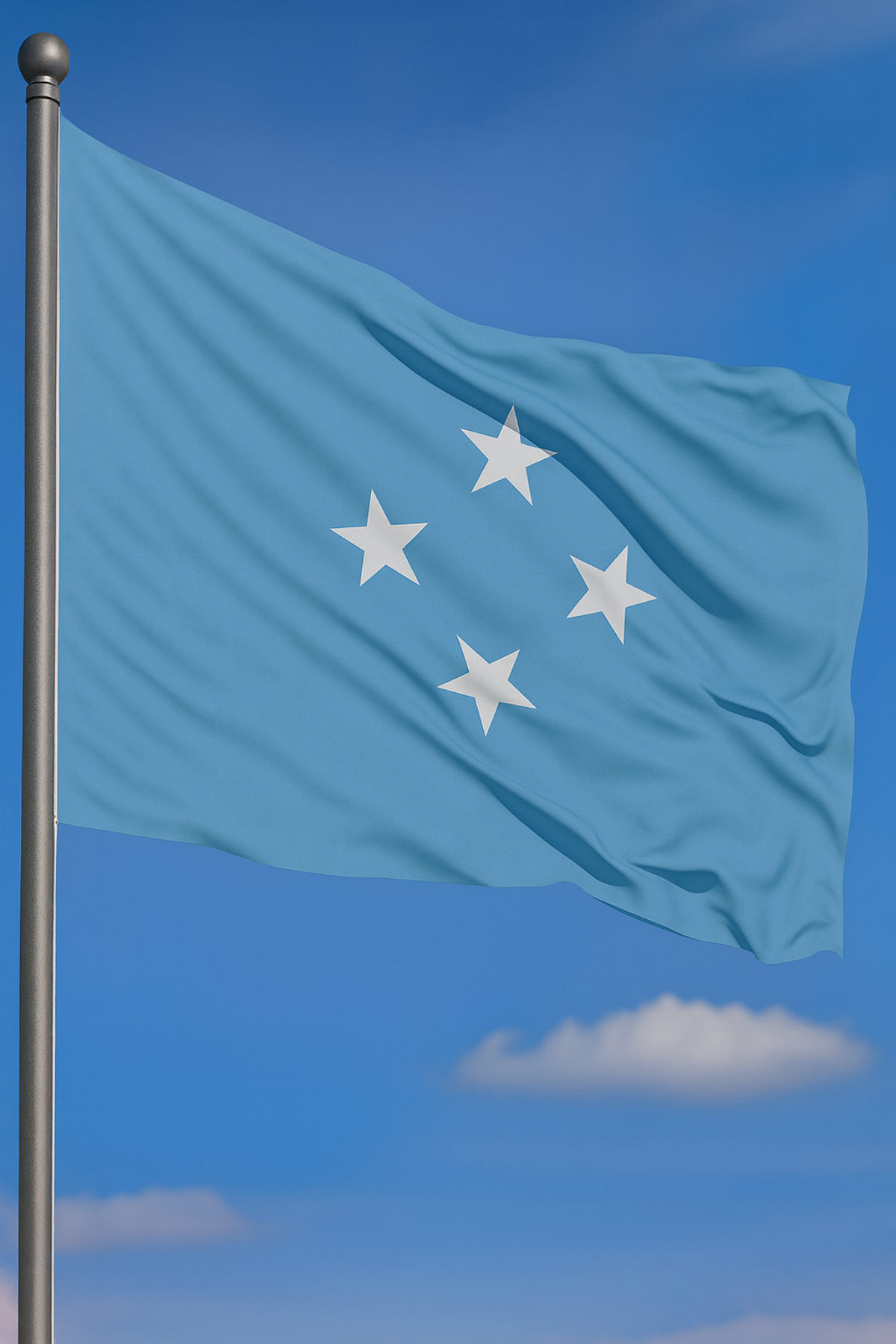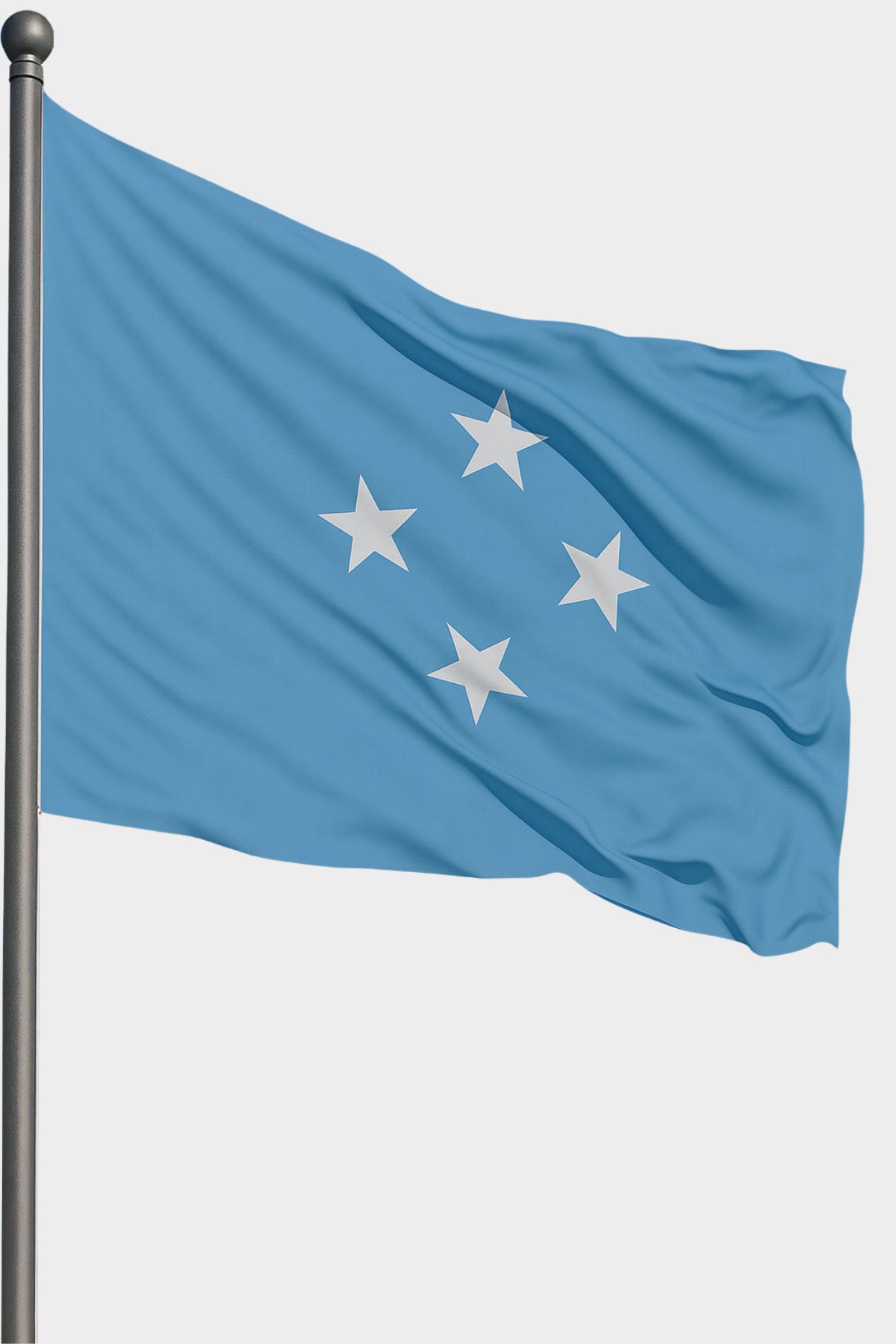 Açık mavi zemini ve ortasında yer alan dört beyaz yıldızla tanınan bu bayrak, Pasifik Okyanusu’ndaki dört eyaletin birliğini simgeler. Sade tasarımı ve canlı renkleriyle hem estetik hem de anlamlı bir görünüm sunar. Dış mekân koşullarına karşı üstün dayanıklılığı sayesinde uzun ömürlü kullanım sağlar.
