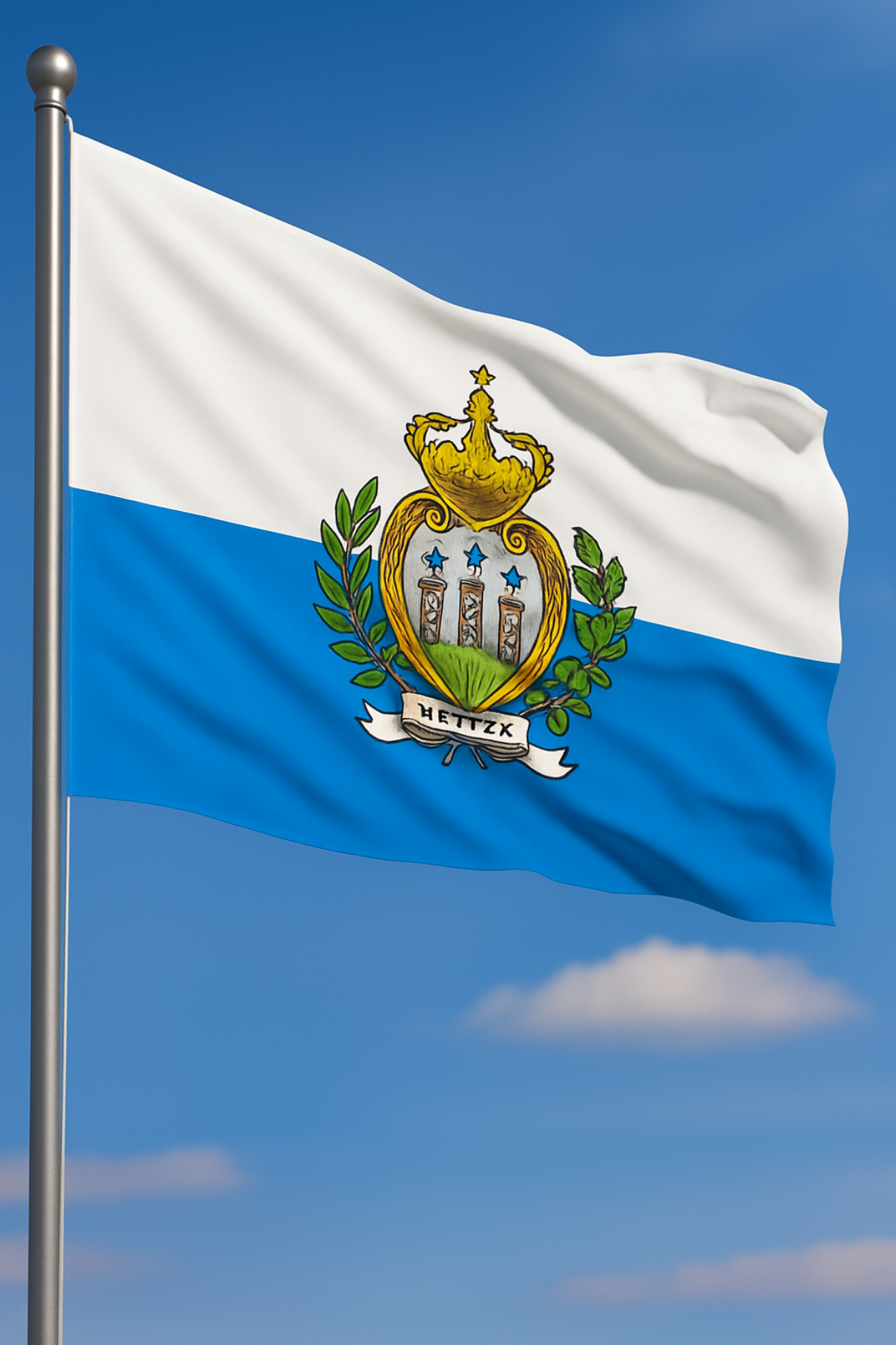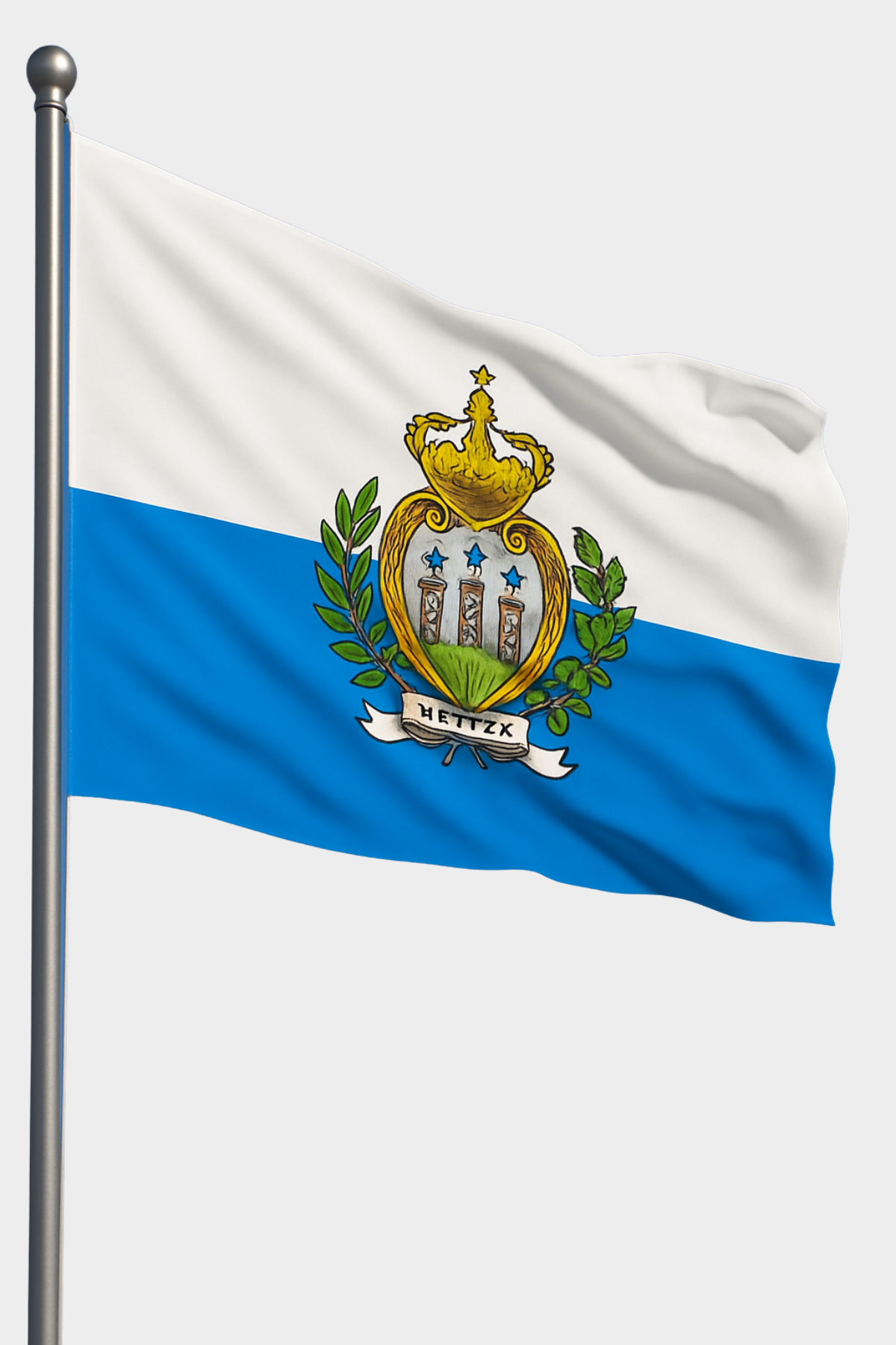 Beyaz ve açık mavi yatay şeritleriyle sade bir görünüme sahip olan bu bayrak, ortasındaki San Marino armasıyla ülkenin tarihini ve bağımsızlık simgesini yansıtır. Dış mekân koşullarına karşı üstün dayanıklılığı sayesinde uzun süreli kullanım için idealdir.