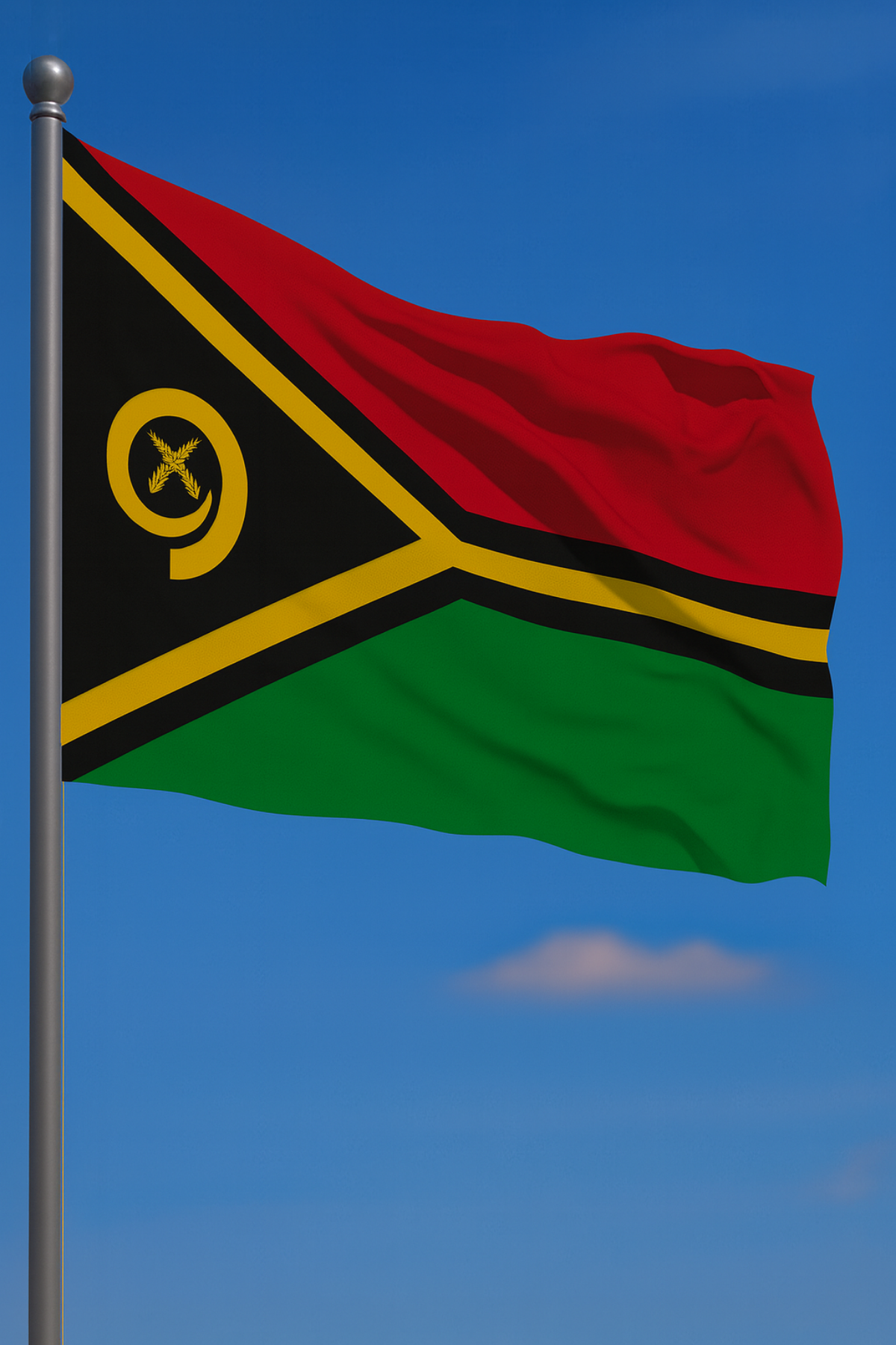 Dayanıklı Raschel kumaştan üretilen bu bayrakla Vanuatu’ya olan sevginizi gururla gösterin.