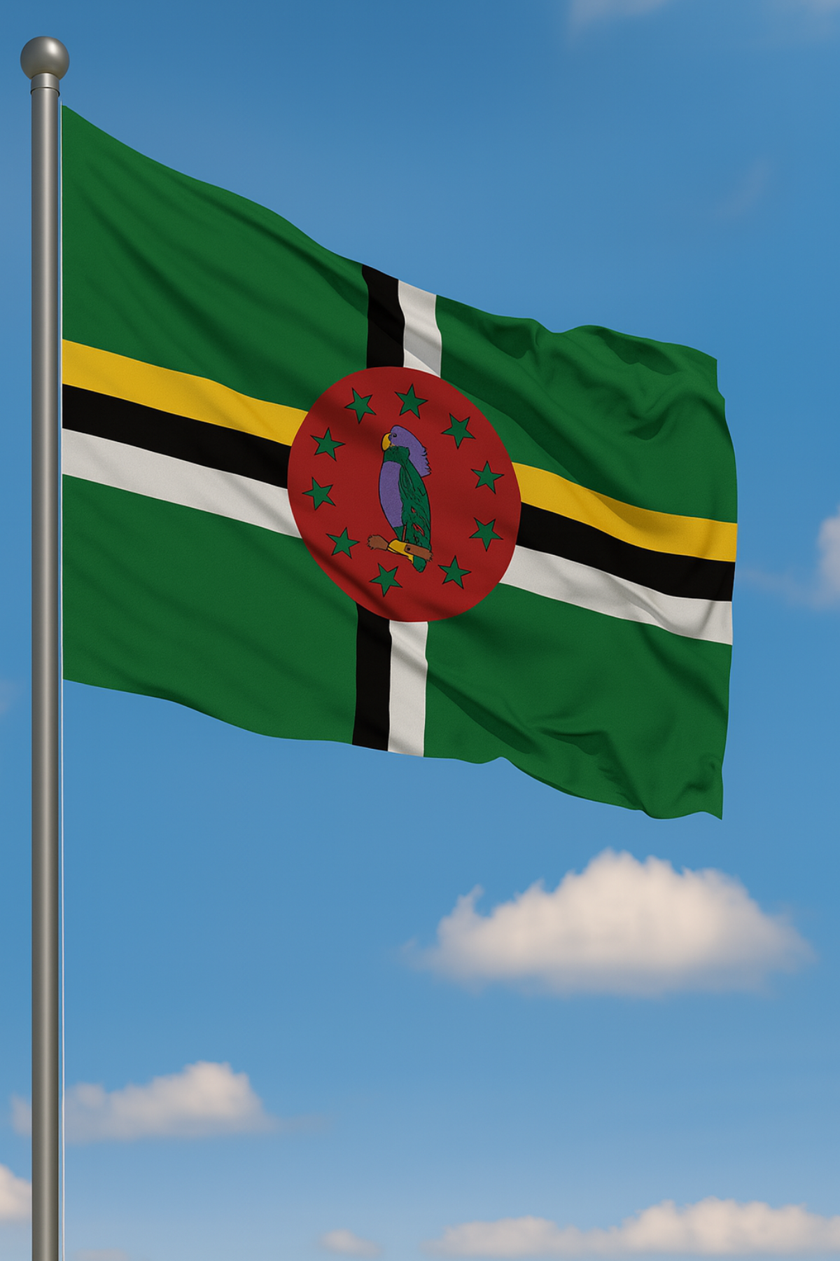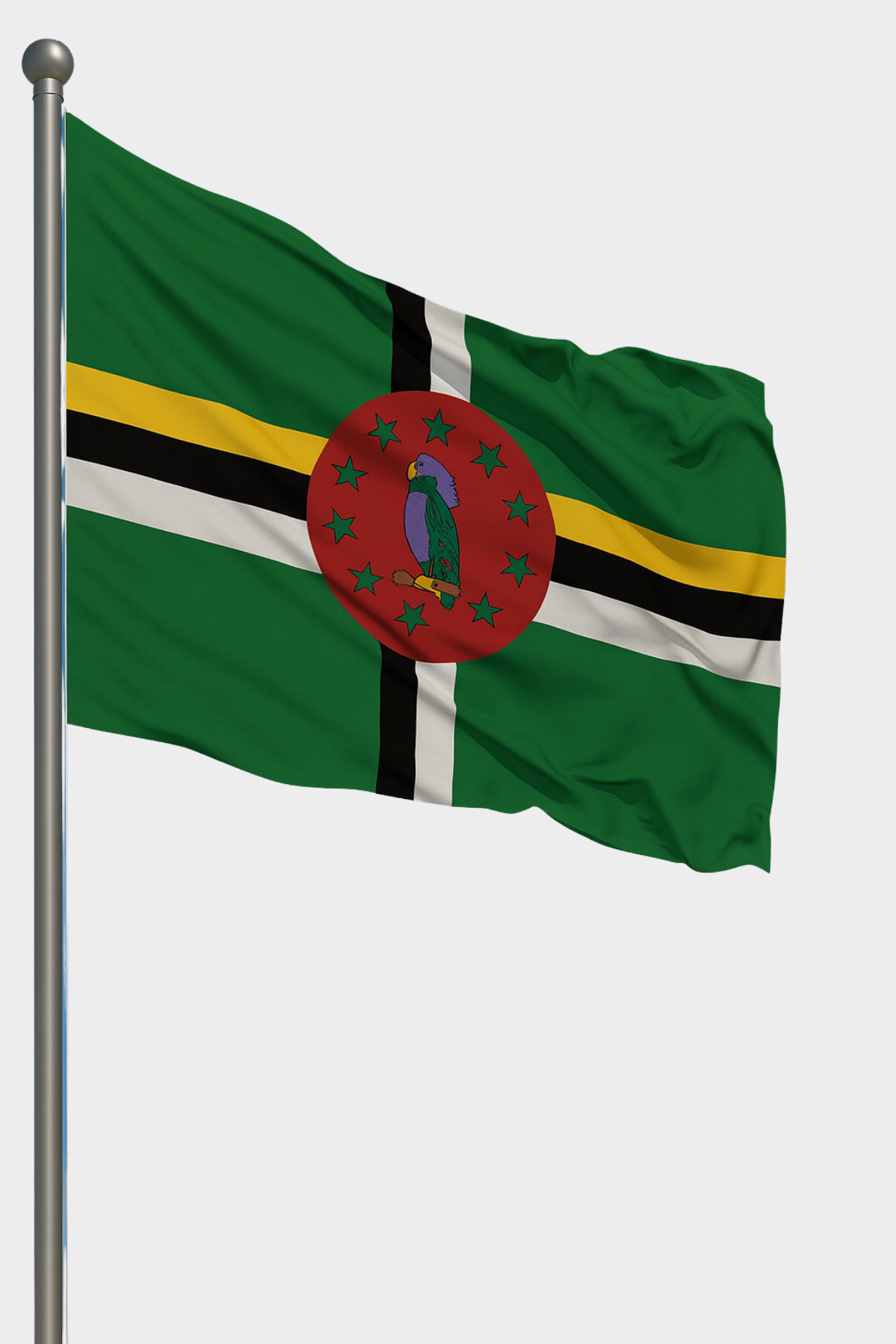 Ruhunu kutlayın Birinci sınıf Rashel kumaş bayrağımızla Dominika. Dış mekan dayanıklılığı ve görsel etki için tasarlanan bu bayrak, resmi törenler, okullar, etkinlikler veya vatanseverlik gösterileri için mükemmeldir.