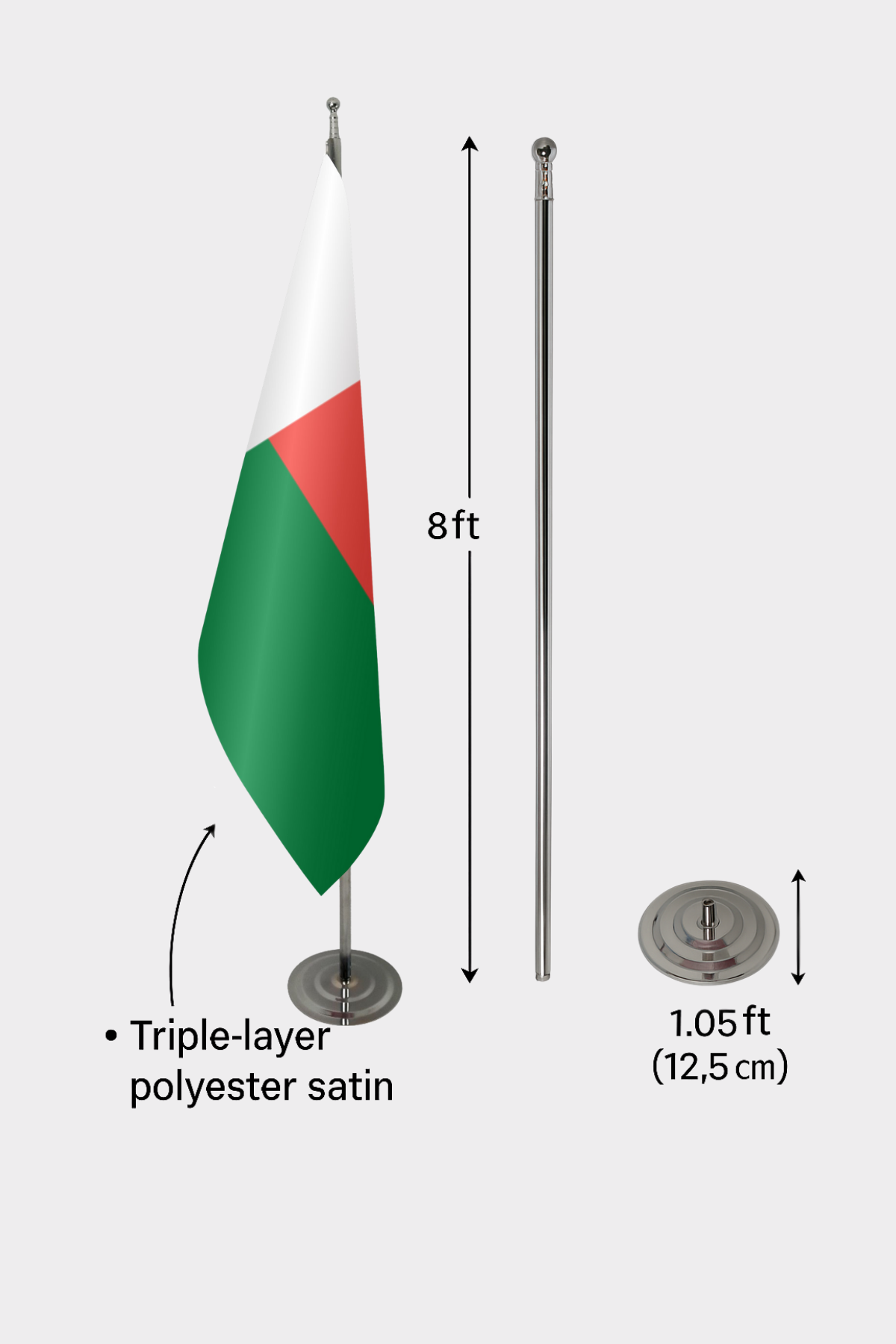 • Kumaş: Dayanıklı 3x5 ft (100x150 cm) çift katmanlı saten kumaş
