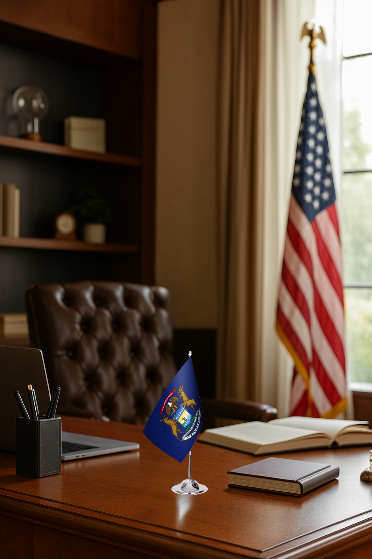 Bu zarif Michigan Eyalet Masa Bayrağı ile eyalet gururunuzu gösterin.