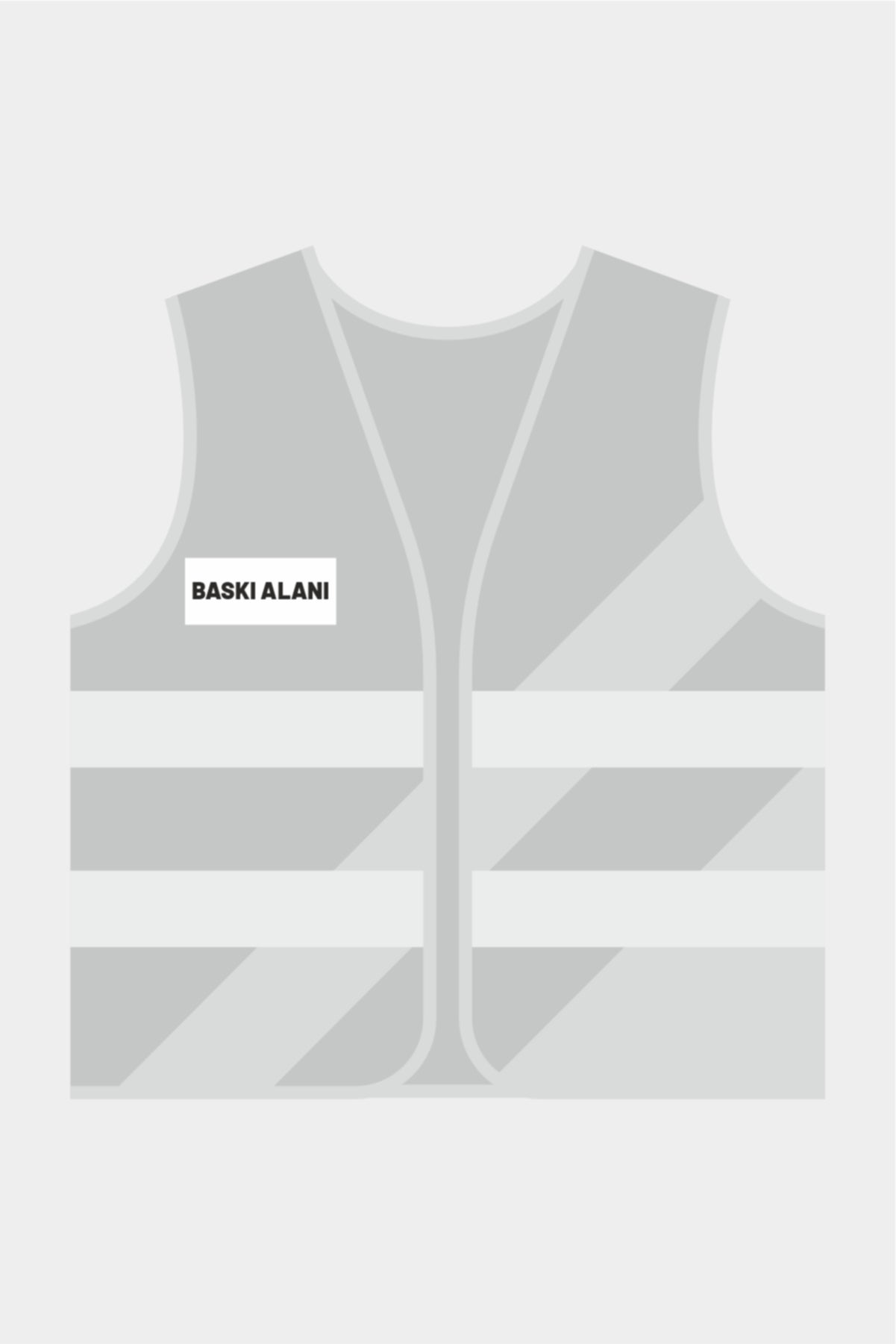 Yelek, düşük ışık koşullarında görünürlüğü artırmak için iki yansıtıcı şeride ve hızlı ve güvenli bir şekilde takılmasını sağlayan ön kısımda cırt cırtlı (Velcro) bir kapatma sistemine sahiptir. İsteğe bağlı olarak özel baskı (logo, metin vb.) uygulanabilir, bu da onu kurumsal ve promosyonel amaçlar için ideal hale getirir.
