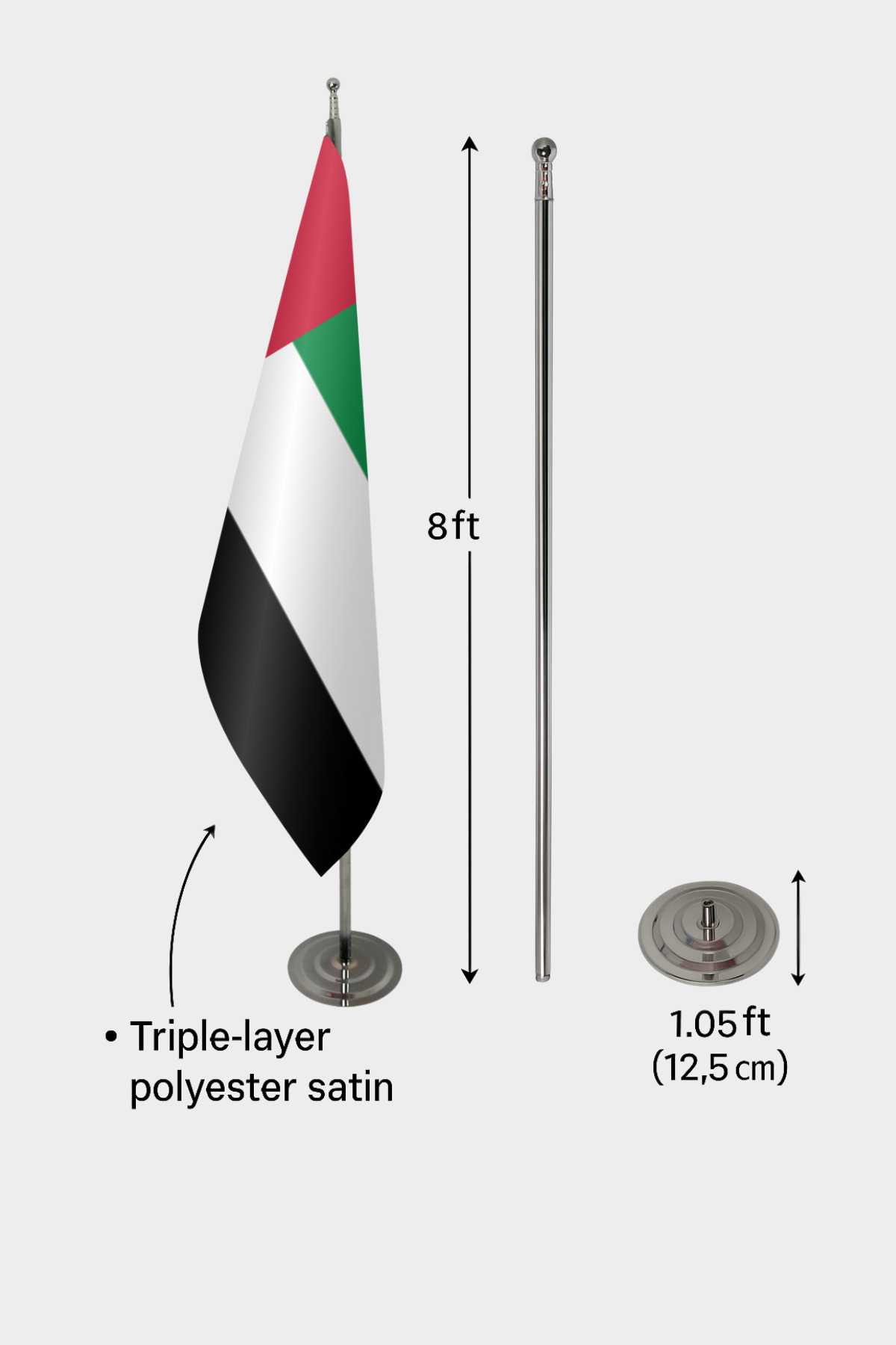 • Direk: Uzun ömürlü kullanım için krom metal direk